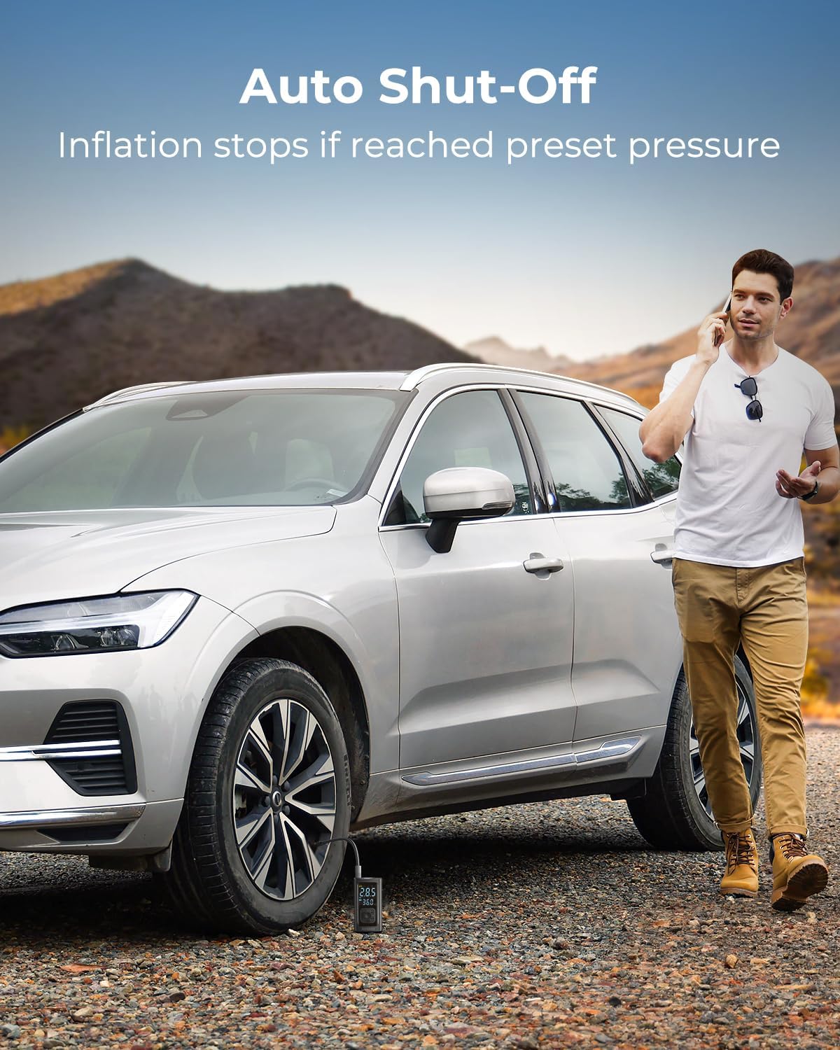 Syncwire Tire Inflator Portable Air Compressor - 150PSI 2X Faster Inflation Smart Air Pump for Car Tires [Extra-Large LCD] with Digital Pressure Gauge, Auto Shut-Off for Car, Motorcycle, Bike & Balls