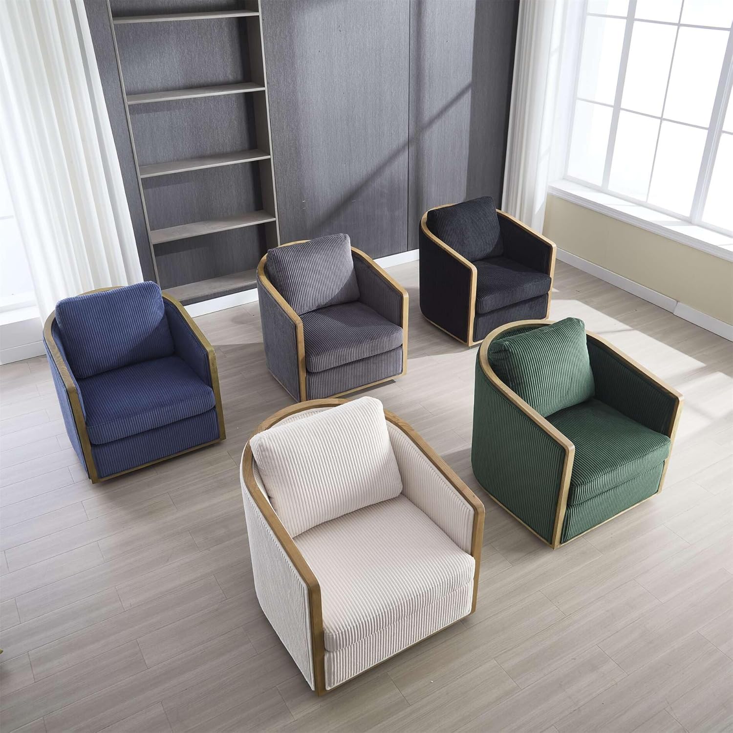 SZLIZCCC 360 Degree Swivel Barrel Chair, Round Accent Chair, Living Room Swivel Accent Sofa Chair, Club Lounge Armchair for Living Room Bedroom Office (Beige Corduroy)