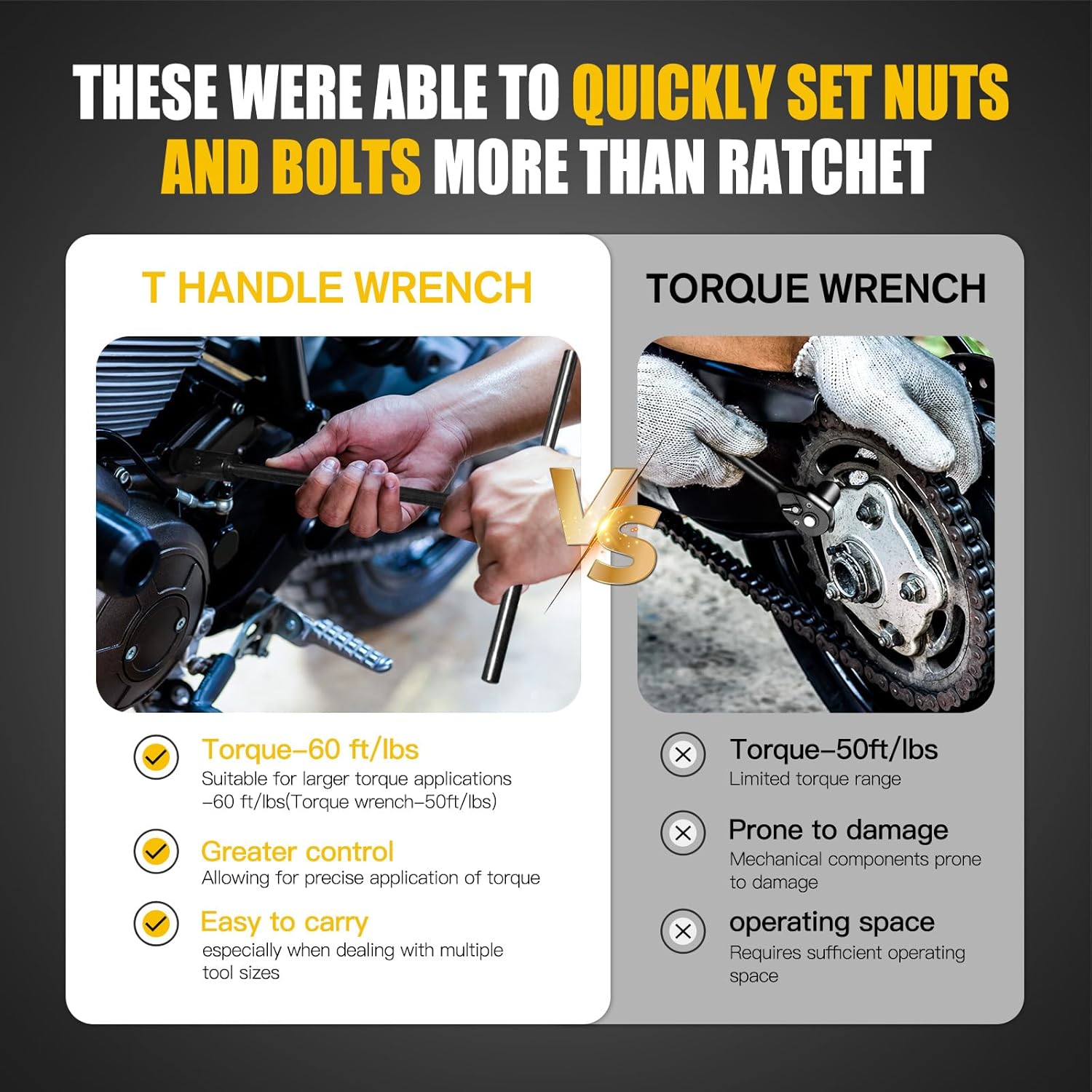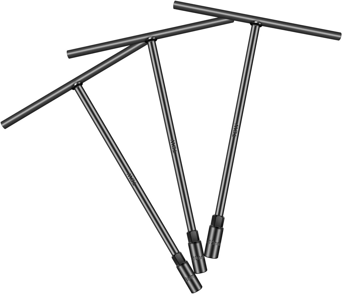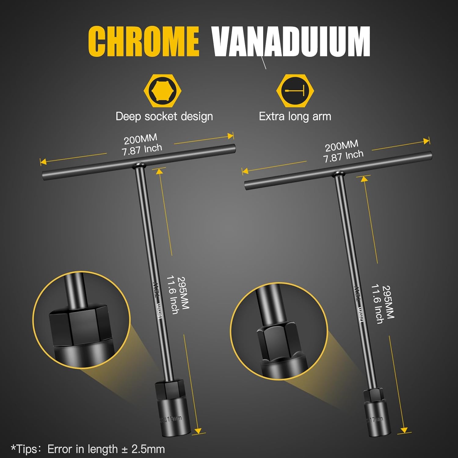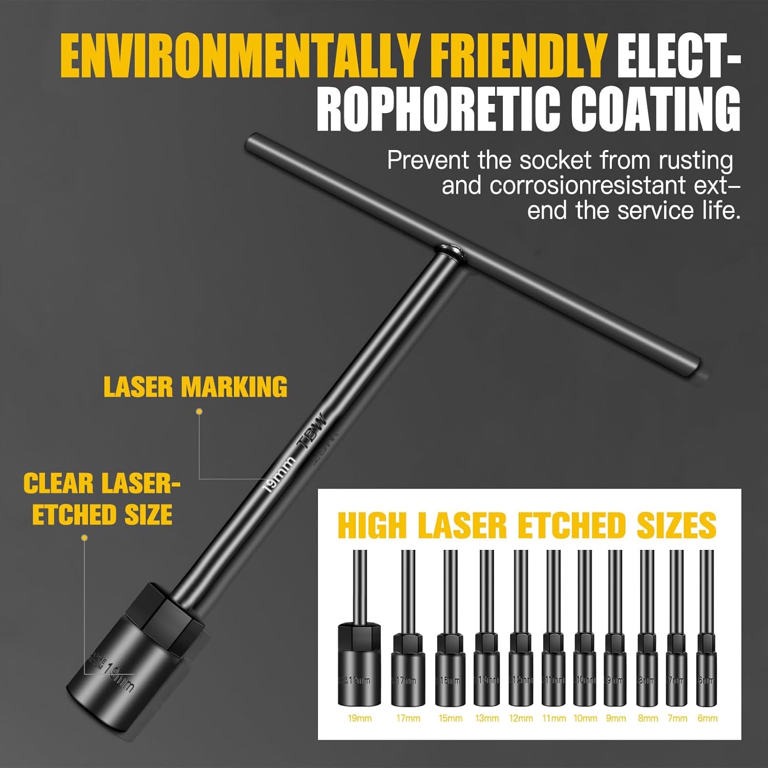 T-Handle Socket Wrench Set, 11PCS Metric Handle Wrenches - 6, 7, 8, 9, 10, 11, 12, 13, 15, 17, 19mm, 6-Point Hex Socket Lug Wrench for Motorcycle Car Bicycle Repair, Chrome Vanadium Steel