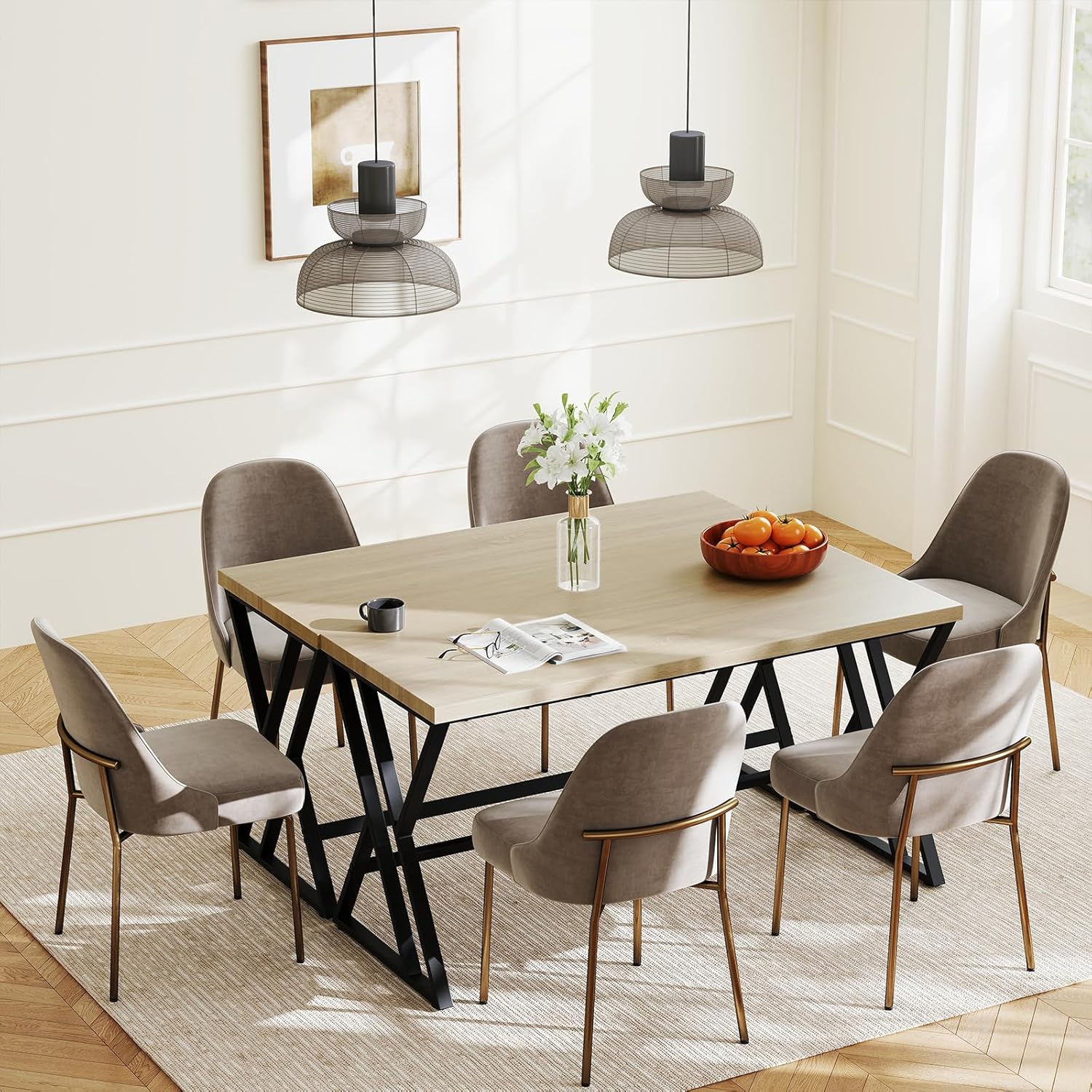 Tangkula 59" Computer Desk, Home Office Desk with Heavy-Duty Metal Frame & Crossbar, Executive PC Workstation, 5 FT Conference Room Table, Rectangular Meeting Table (Grey,1)