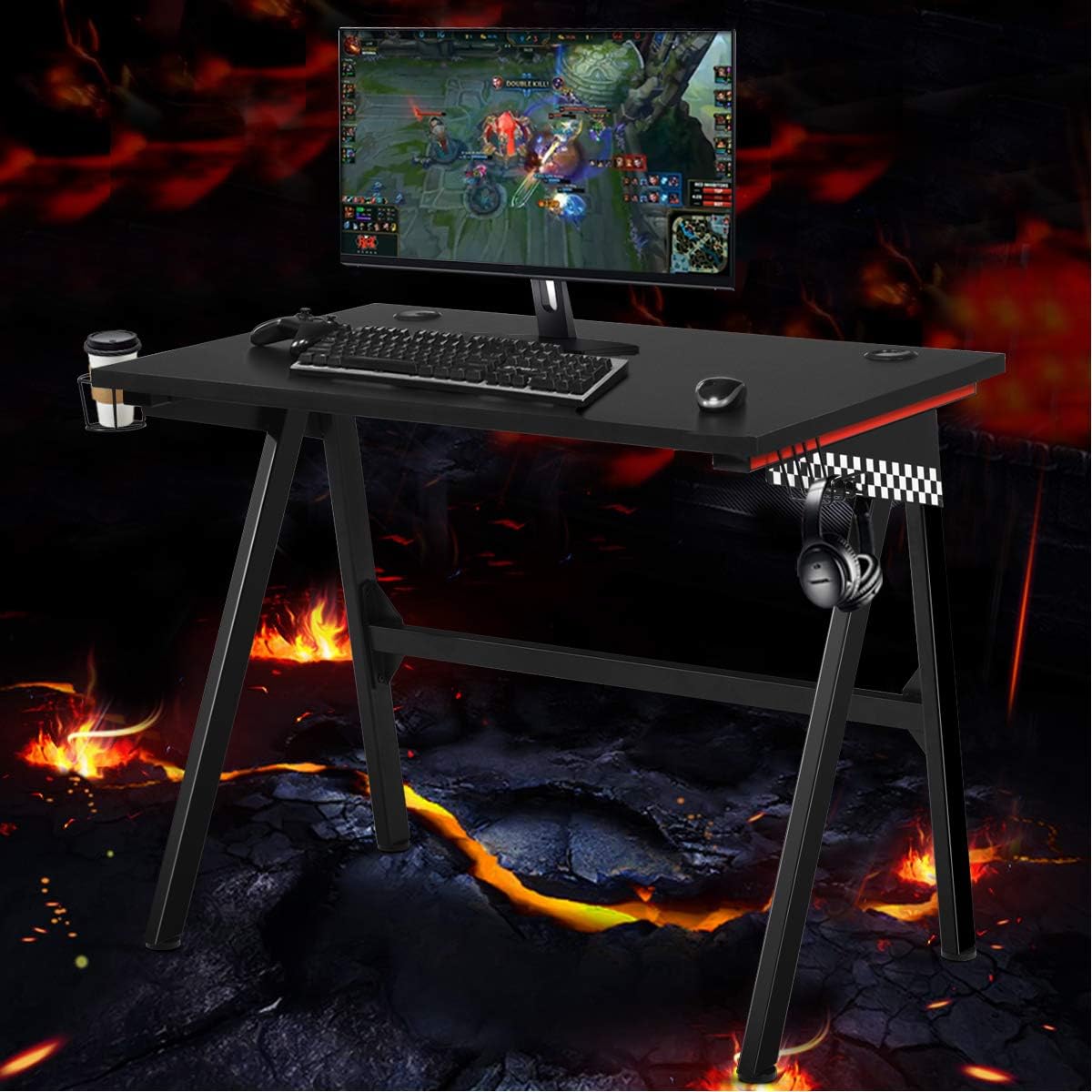 Tangkula Computer Desk Gaming Desk, E Sports Gamer Table, Professional Gamer Workstation with Cup Holder, Headphone Hook, Ergonomic PC Gaming Table, Writing Desk for Home Office (Black)