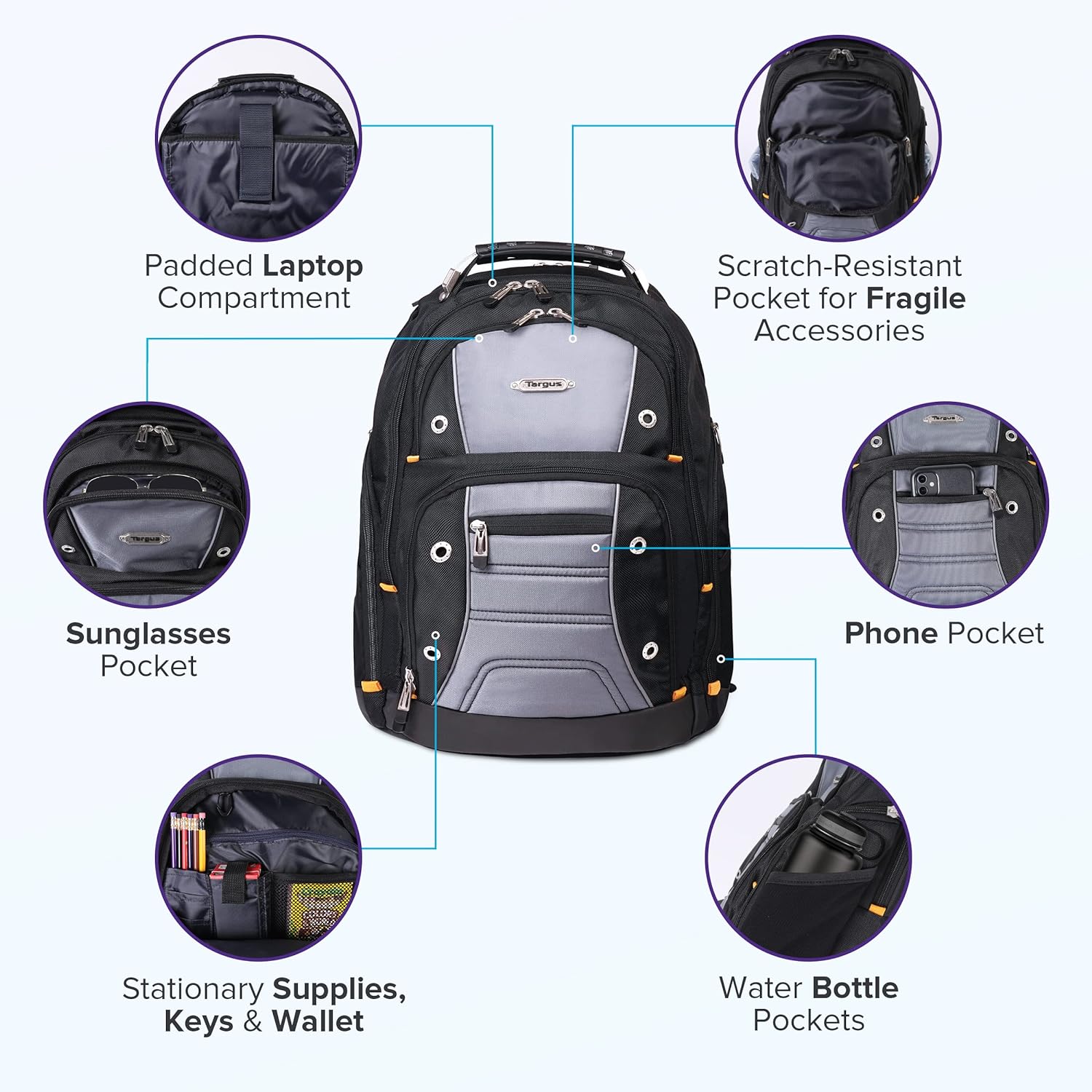 Targus Drifter II Laptop Backpack, Black/Gray – Backpack for Men for Business and Travel, Durable Water-Resistant Material, Fits up to 17" Laptops (TSB239US)