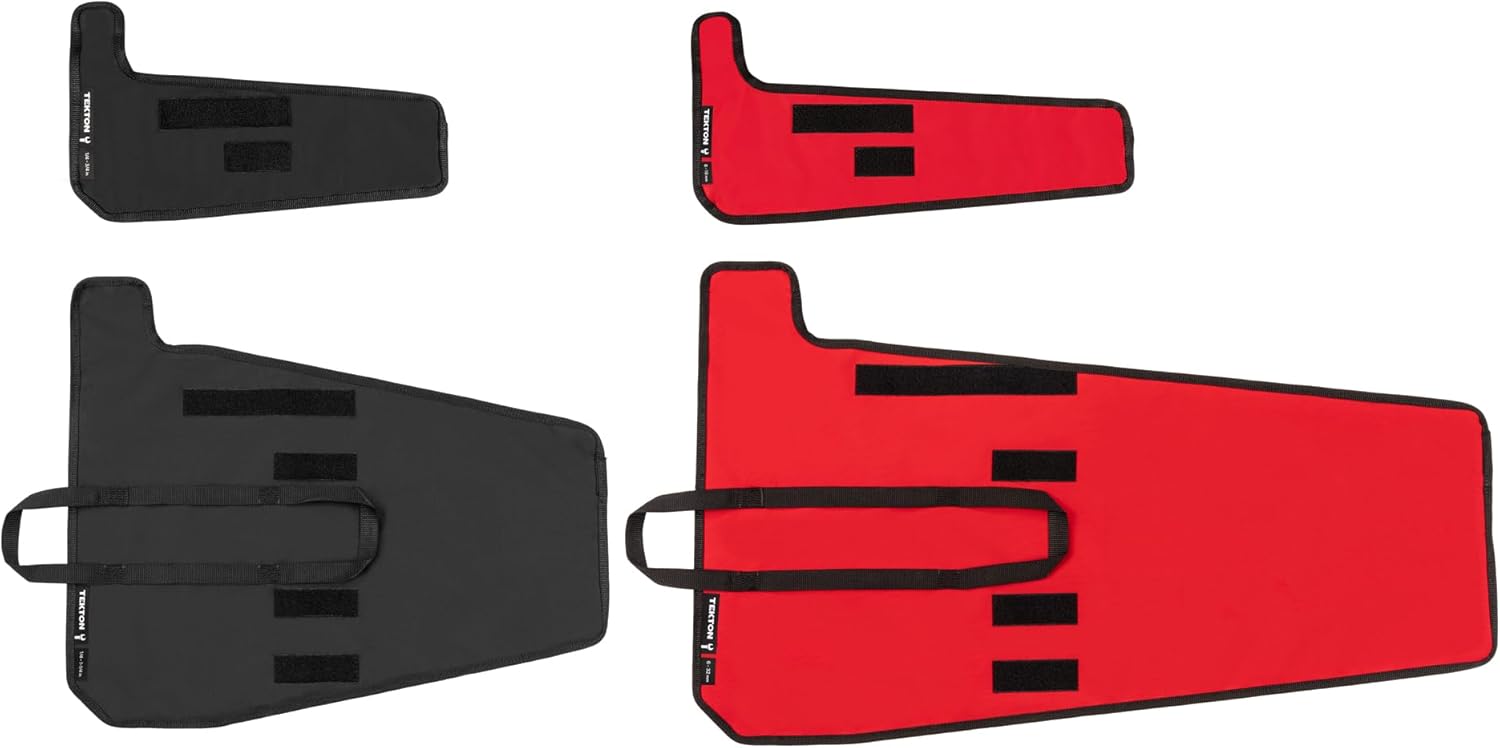 Each Tekton Stubby Combination Wrench is permanently marked with a stamped size marking on both sides for easy identification. These stubby wrenches have a shorter handle than full-size combination wrenches for increased versatility and access into tight spaces. The 12-point box end doubles the available access angles compared to a 6-point end. In order to prevent rounding off fasteners, the box end is designed to contact and apply force to the sides of the fastener head and not the corners. The 15-degree offset box end creates clearance for your fingers and makes it easier to reach around obstructions. To reduce the working swing arc in tight spaces, the open end is angled 15 degrees so the wrench can be flipped over with each rotation to engage the fastener twice as often. Carry the wrenches anywhere with the included compact roll-up pouches that keep wrenches well-packed and unable to slide out. The polyurethane-backed 600 x 600 denier polyester is both abrasion and tear resistant, and has a Durable Water Repellent (DWR) coating. The pouch design minimizes bulk from extra material so the wrenches can be quickly accessed without any fabric flaps getting in the way.