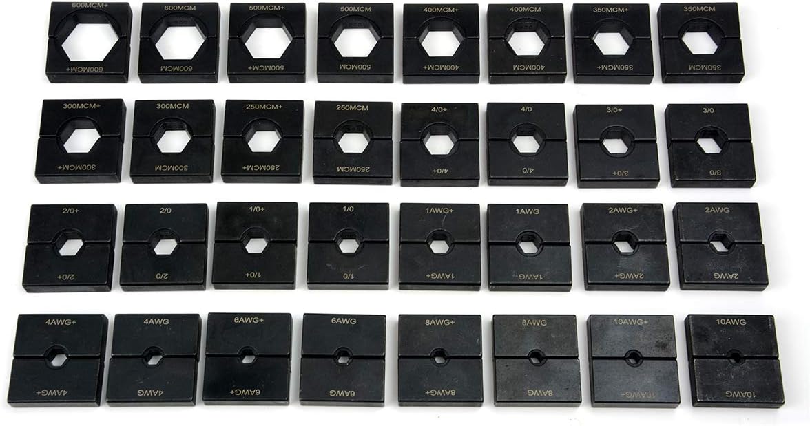 Included Crimp Dies MCM | Yes. Five sets: 250, 300, 350, 500, 600 MCM. | No. Does not crimp MCM wire sizes. | No. Does not crimp MCM wire sizes. | Not applicable. Dies not required. | Not applicable. Dies not required. | Not applicable. Dies not required. |