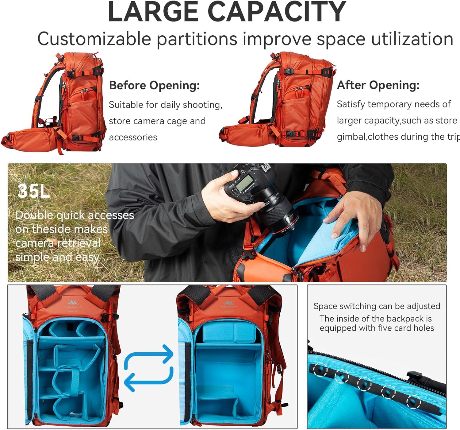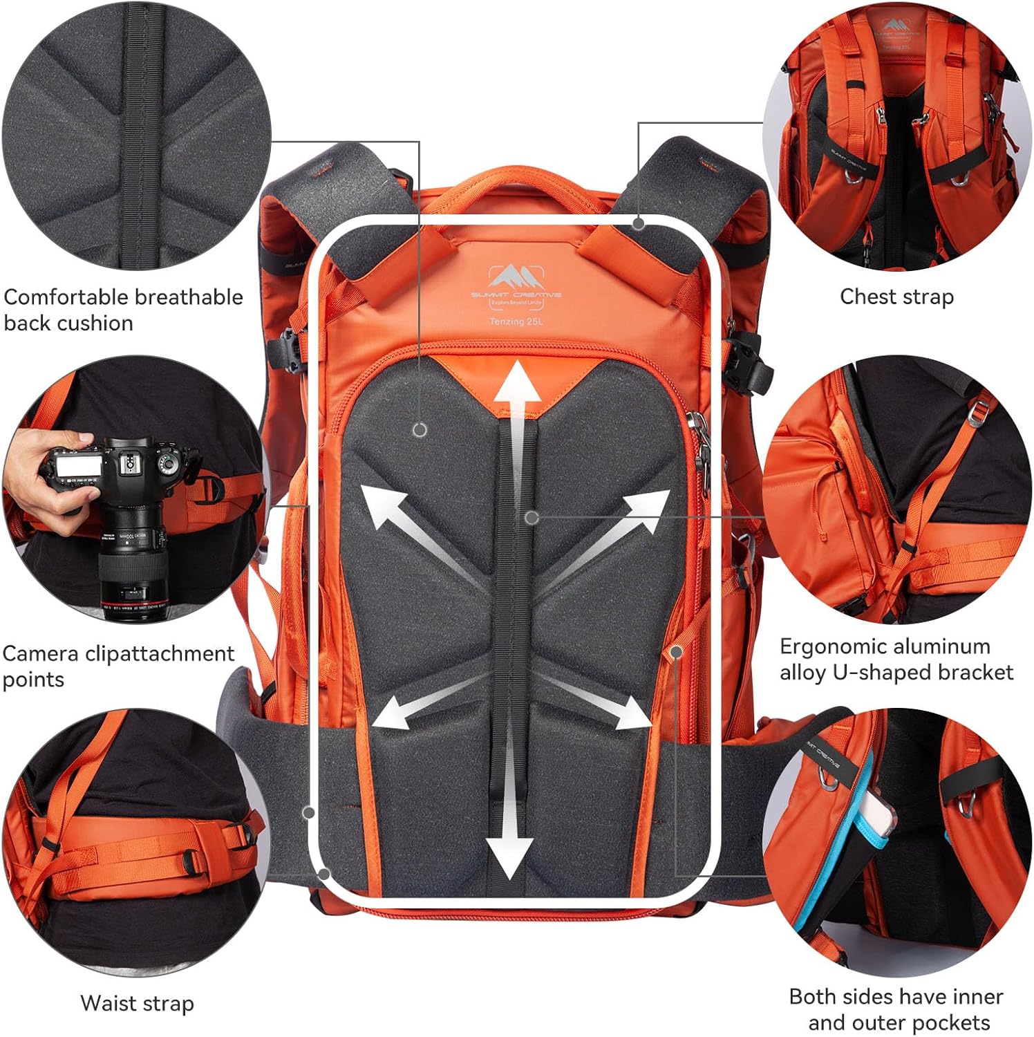 Tenzing 25L Camera Backpack with Rain Cover for Photographers 14 inch Laptop Compartment Waterproof Large Camera Bag for Drone,Cameras, Batteries, Lenses,Tripod(Orange)