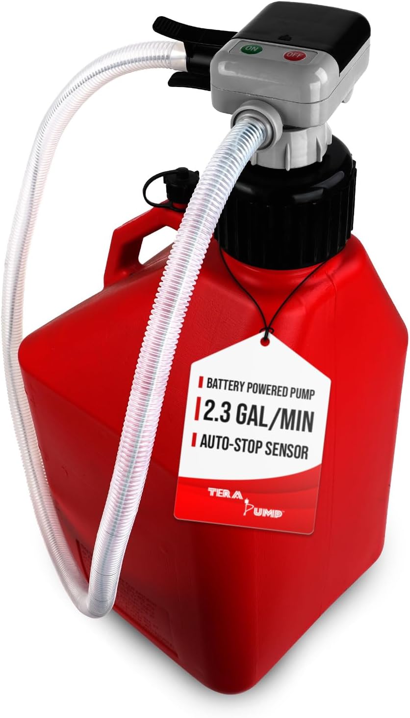 TERA PUMP Battery Powered Chemical Resistant Fuel Transfer Pump (2.3 GPM) for Methanol, Ethanol, DEF, Window Washer Fluid with Auto Stop Sensor, 4.25ft Outtake Hose
