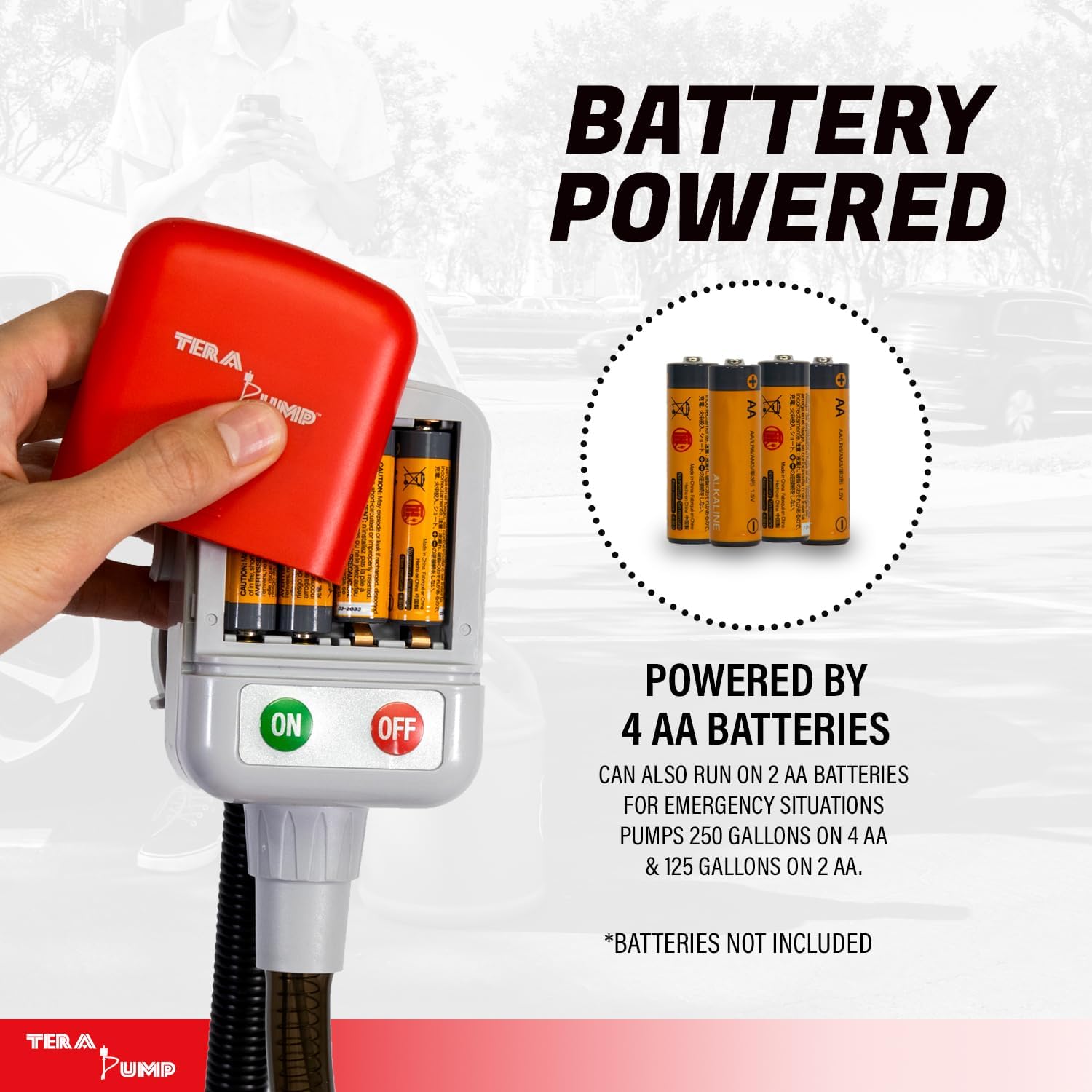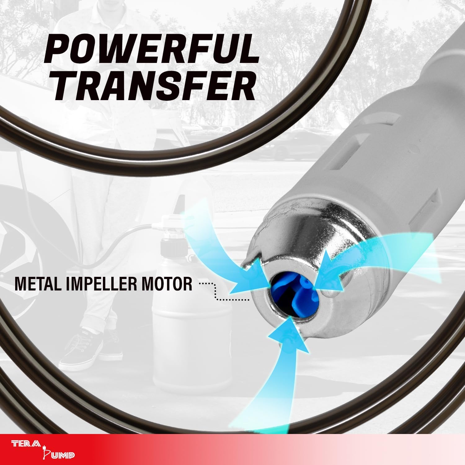 TERA PUMP TRFA01-XL 2nd Gen. Battery Powered Overfill Protection Fuel Transfer Pump w/Universal Gas Can & Utility Jug Adapter, 4.27ft Vinyl Hose, 2.5 GPM for Gas Diesel E15 E85 Fuels