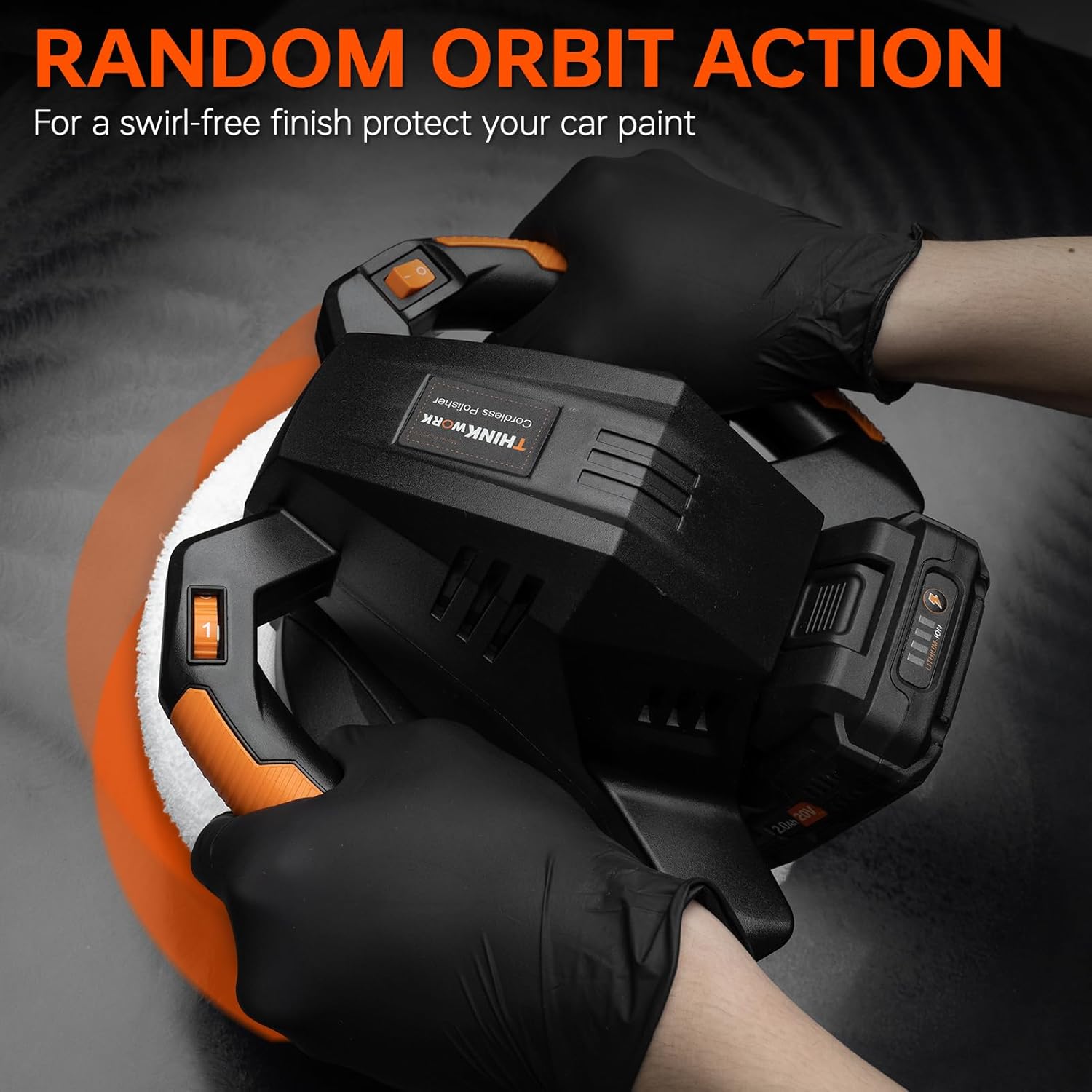 THINKWORK Buffer Polisher, 20V Cordless Buffer Polisher, 10 Inch Portable Polishing Machine Kit for Car, 2Pcs 2Ah Rechargeable Battery, 6 Variable Speed 1500-3600RPM,Double handle,Ideal for Car Waxing