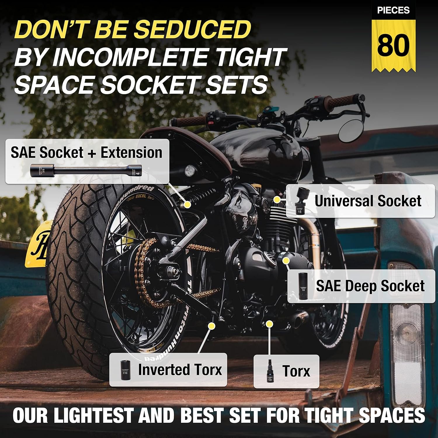 Our Master Socket Set was designed to be the largest and best socket set on the market. The founder was tired of endless trips to the local hardware store to buy just 1 more tool to work on his vehicles. He wanted a single socket set that could be used on just about any fastener from the ones to replace his motorcycle stator to the ones he runs into on the next day when he is replacing his vehicle’s fuel pump. So do yourself a favor, and don’t buy an incomplete set. Save yourself from those pointless hardware store runs.