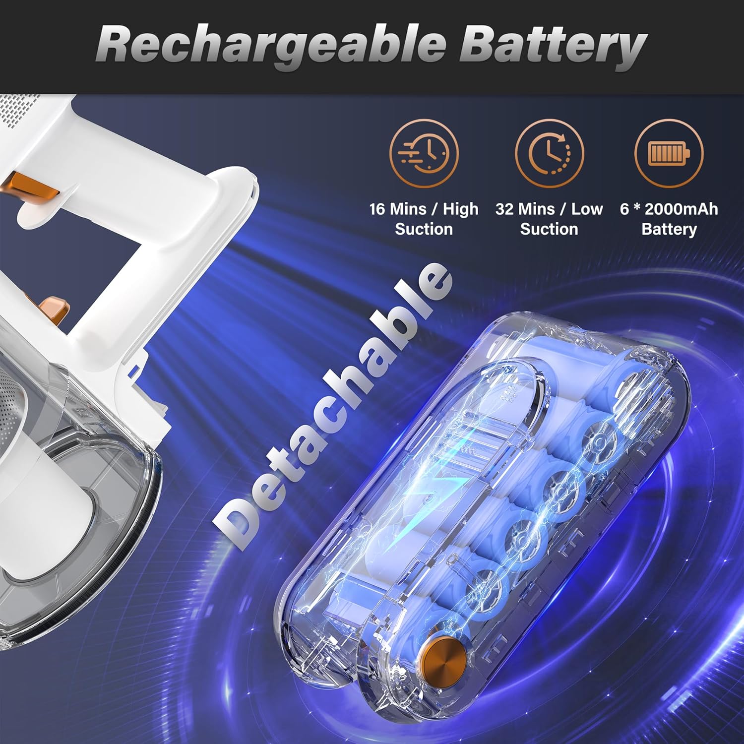 Tikom V500 Cordless Vacuum Cleaner for Home, 40000Pa/450W Stick Vacuum with LED Touch Screen, Charging Wall Dock, Anti-Tangle, Lightweight Handheld Vacuum for Pet Hair, Hard Floor, Carpet