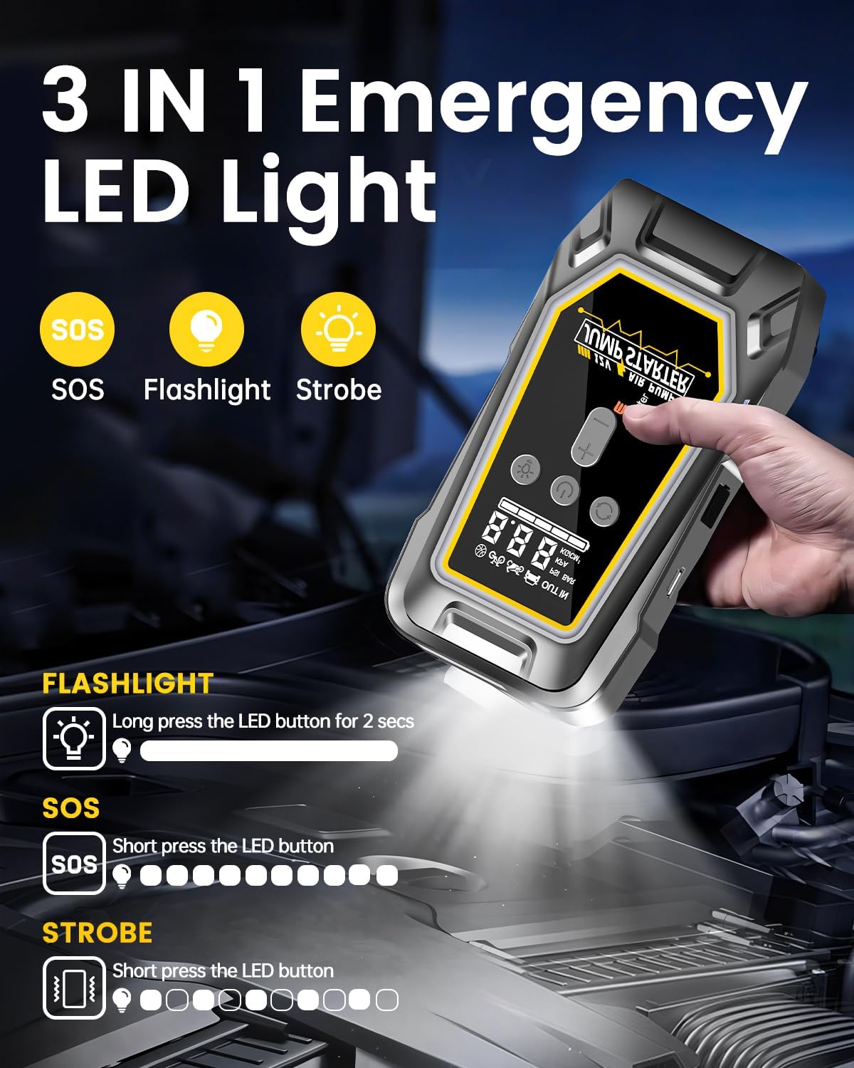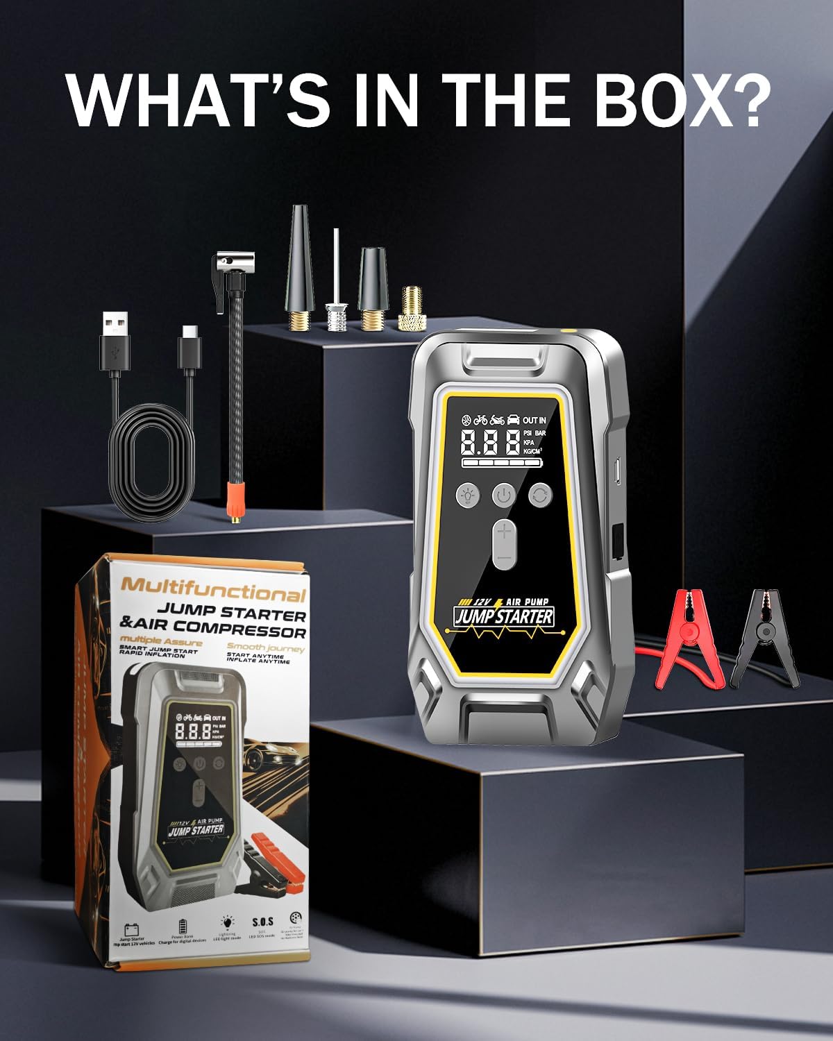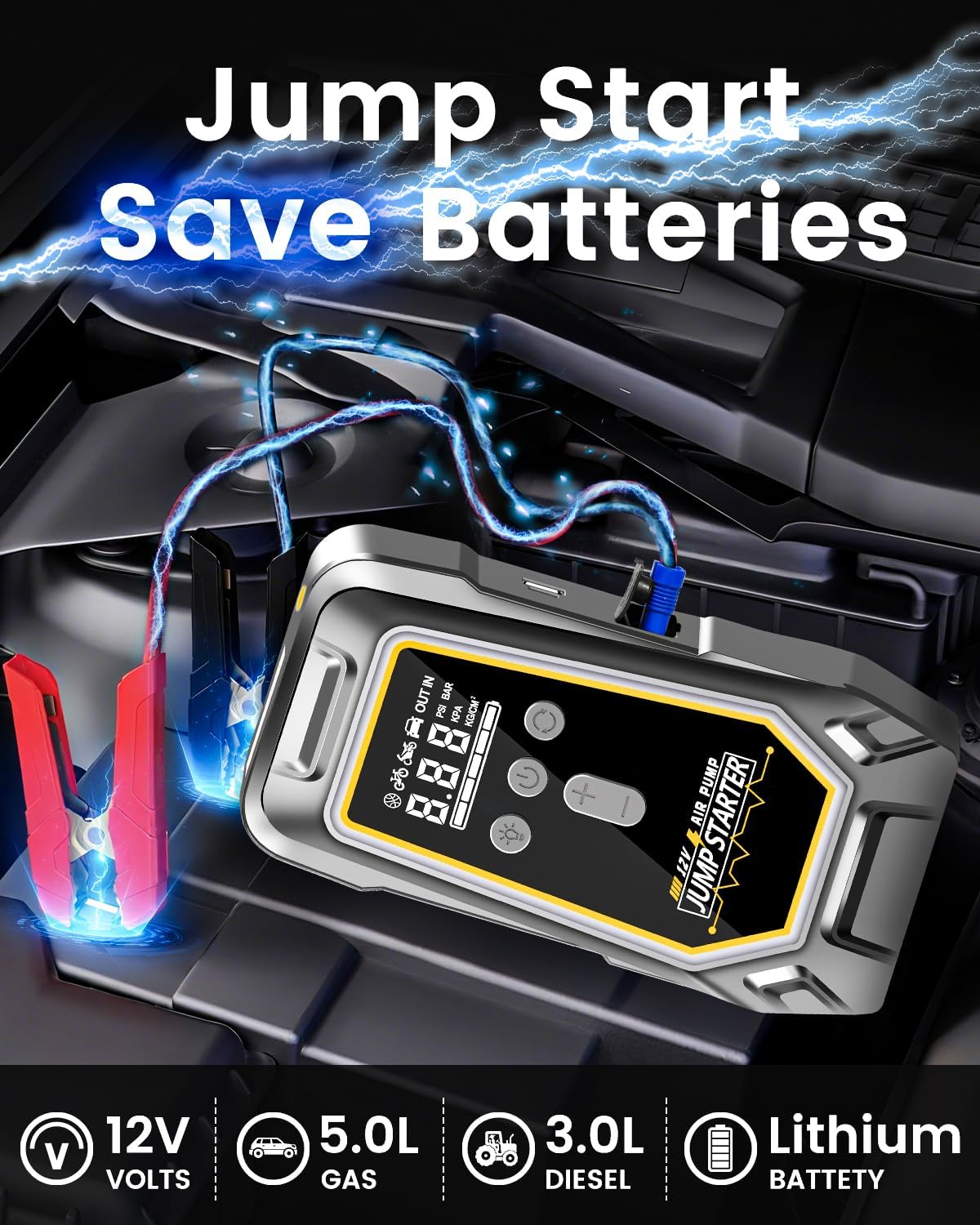 Tire Inflator Air Compressor - 3X Faster Inflation, 150PSI Air Pump for Car Tires with Digital Pressure Gauge, LED Light Cordless Pump for Car Starting, Motorcycle, Bicycle, Balls