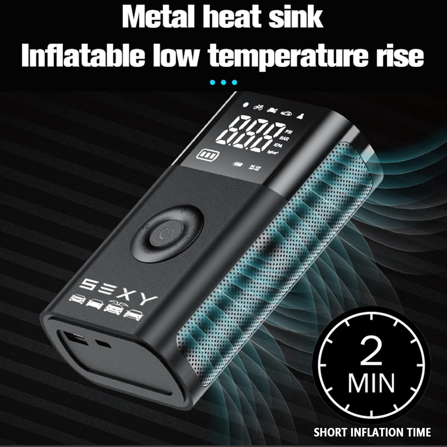Tire Inflator Air Compressor for Tesla Model 3 Y X S,Cordless Portable Air Pump,2025 Tesla Model Y 3 X S Accessories with Tire Pressure Gauge and Emergency Light,Multipurpose Tire Pump