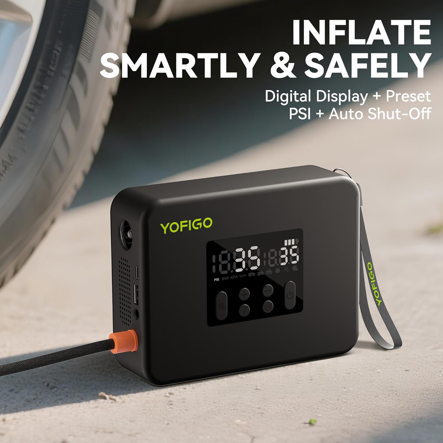 Tire Inflator, Portable Air Compressor 160PSI Dual Power Electric Air Pump for Tire, Air Inflator in Auto Shut-Off, Digital Pressure Gauge Display, for Truck, Cars, Motorcycles, Bikes & Balls