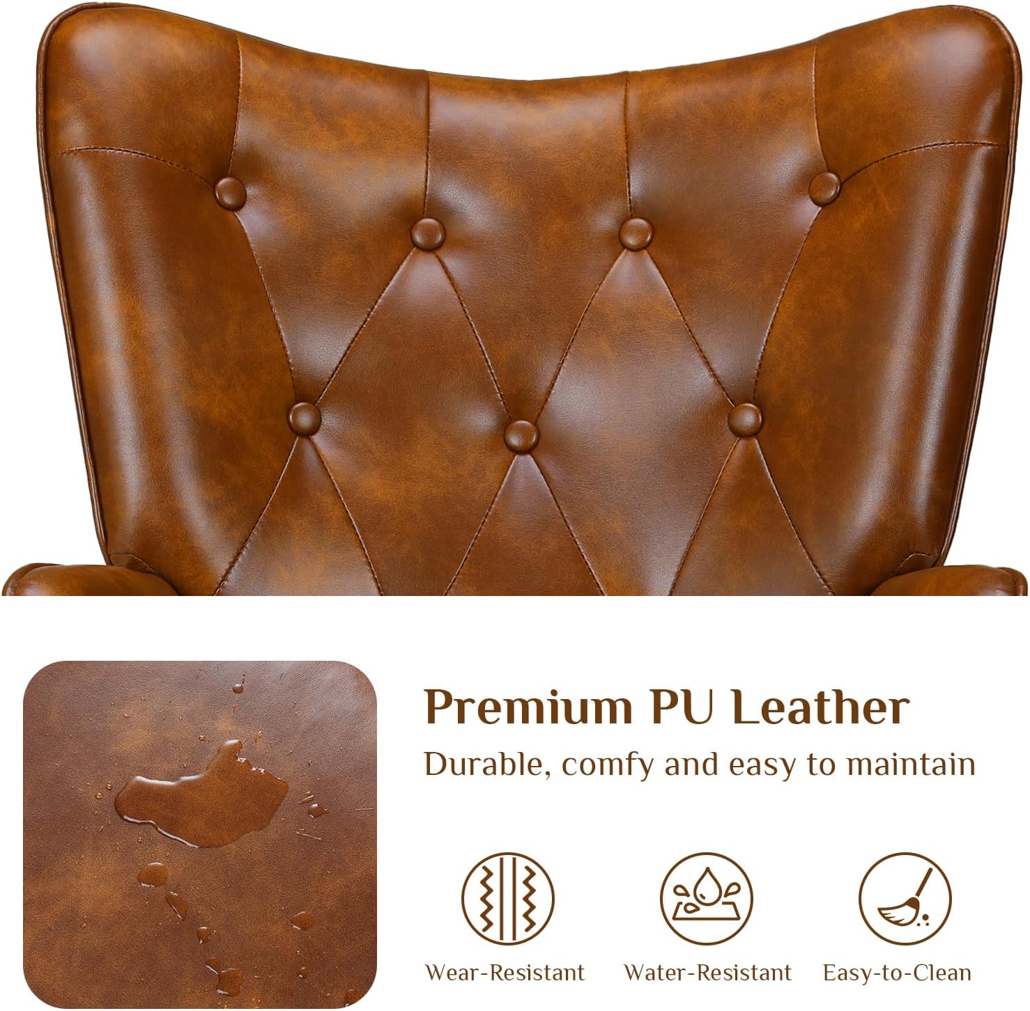 TLSUNNY PU Brown Accent Chair, Comfy Upholstered Armchair with Metal Legs, High Backrest Living Room Chair, Wingback Chair Mid Century Modern for Living Room/Vanity/Bedroom (2 pcs)
