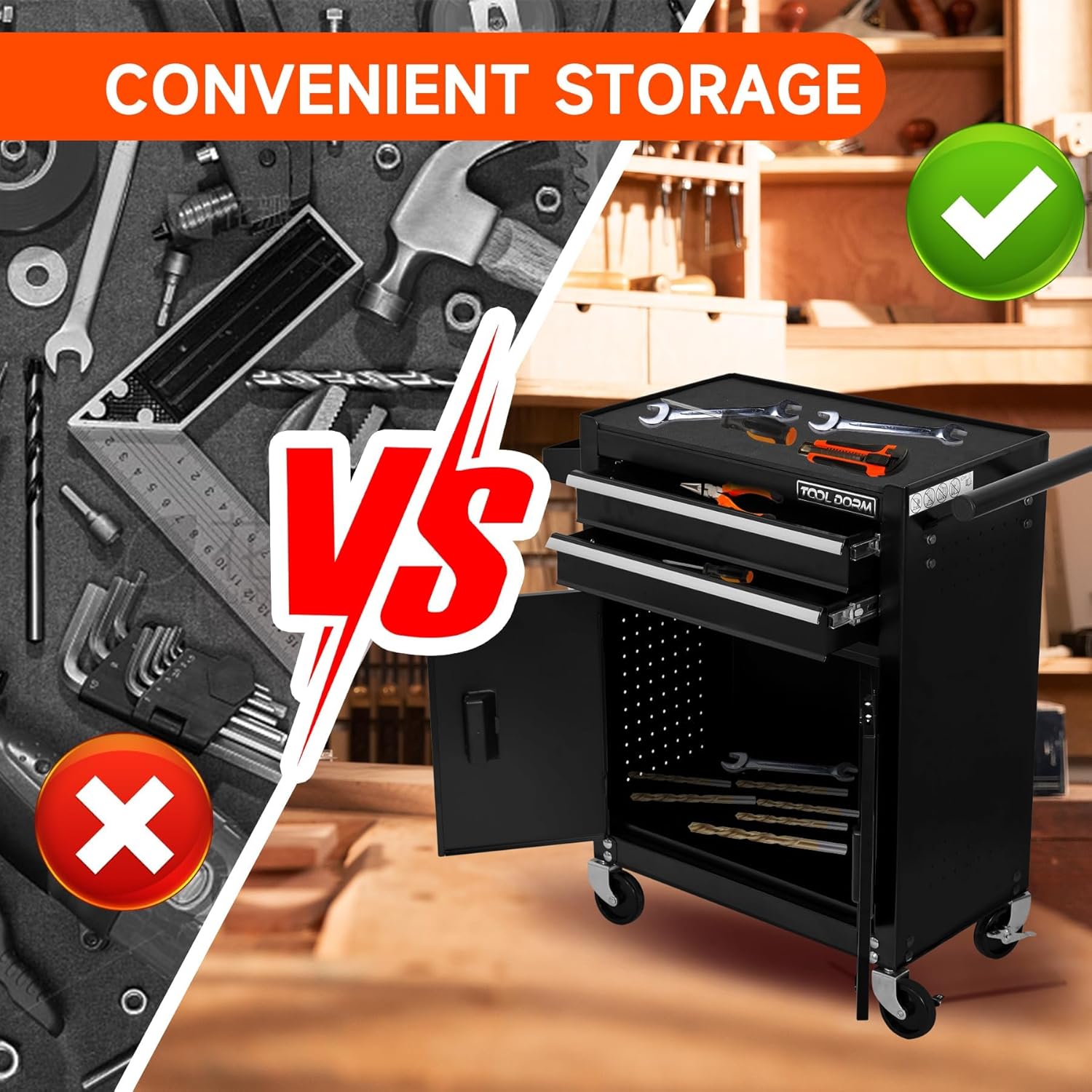 Tool Box Organizer, Rolling Tool Chest with Wheels, Lockable Rolling Tool Cabinets, Tool Cart with Drawers for Workbench, Craftsman, Mechanic, Garage, Workshop(Black, 2 Drawer)