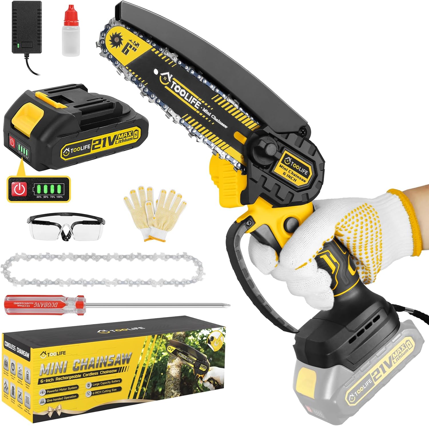 TOOLIFE Mini Chainsaw 6inch, Handheld Electric Battery Powered Chain Saw for Tree Cutting, Gardens Yard Tools for Men Husband Dad,Anniversary Mens Gifts over 50 60, Birthday Gift Ideas