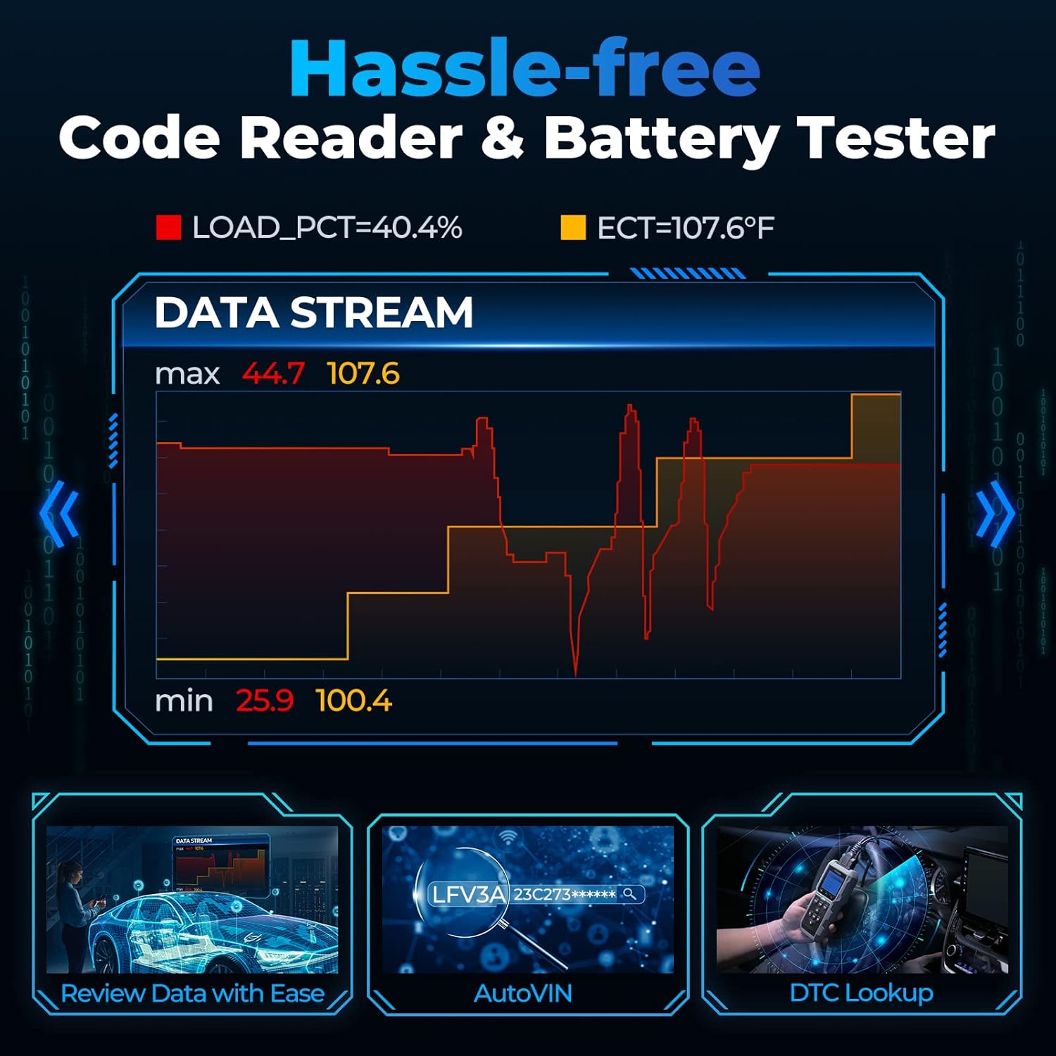 This 2-in-1 OBD2 code reader & Battery tester can work on most vehicles manufactured after 1996, more than 50 car brands and 10000 makes. Widely compatible with KWP2000, ISO9141, J1850 VPW, J1850 PWM and CAN (Controller Area Network).