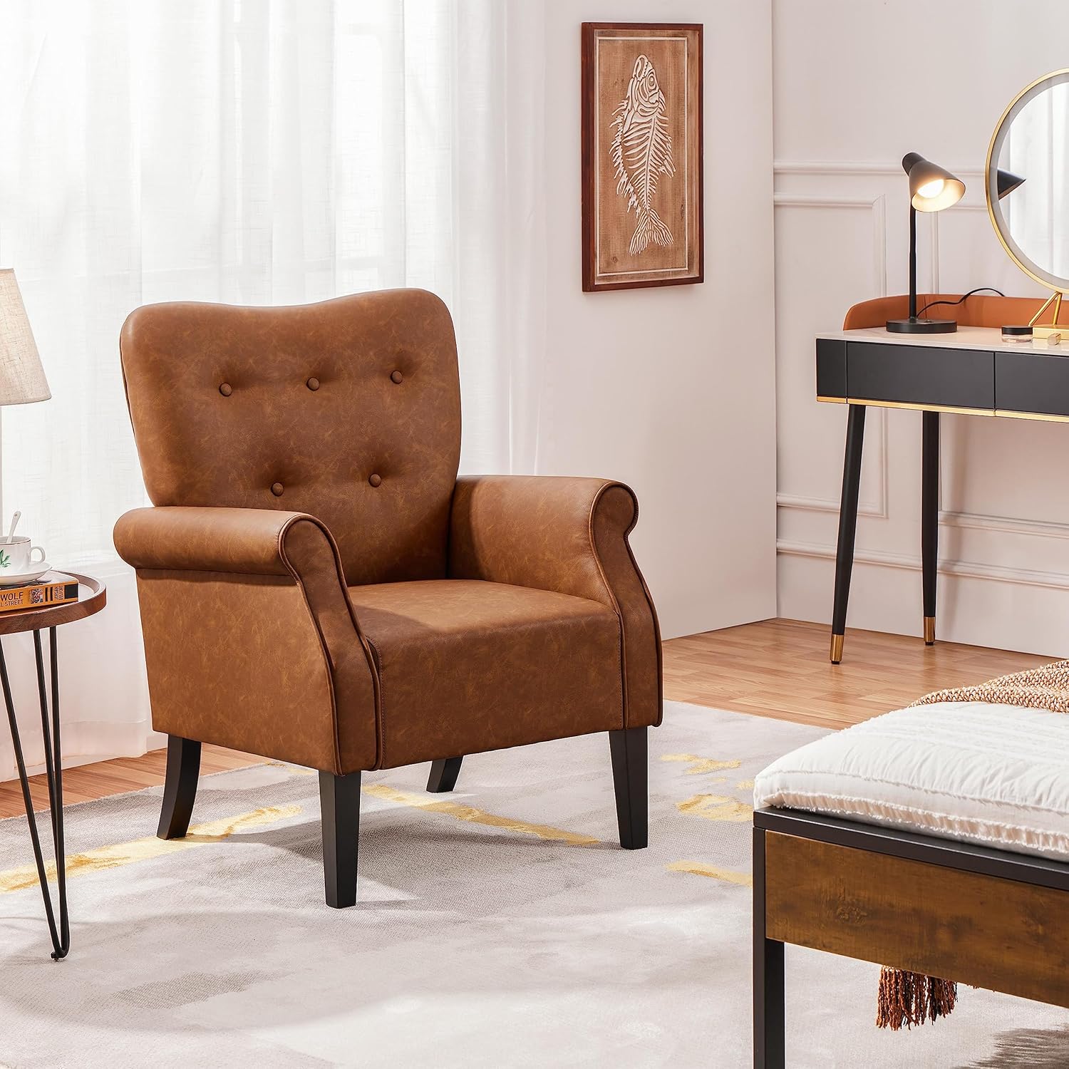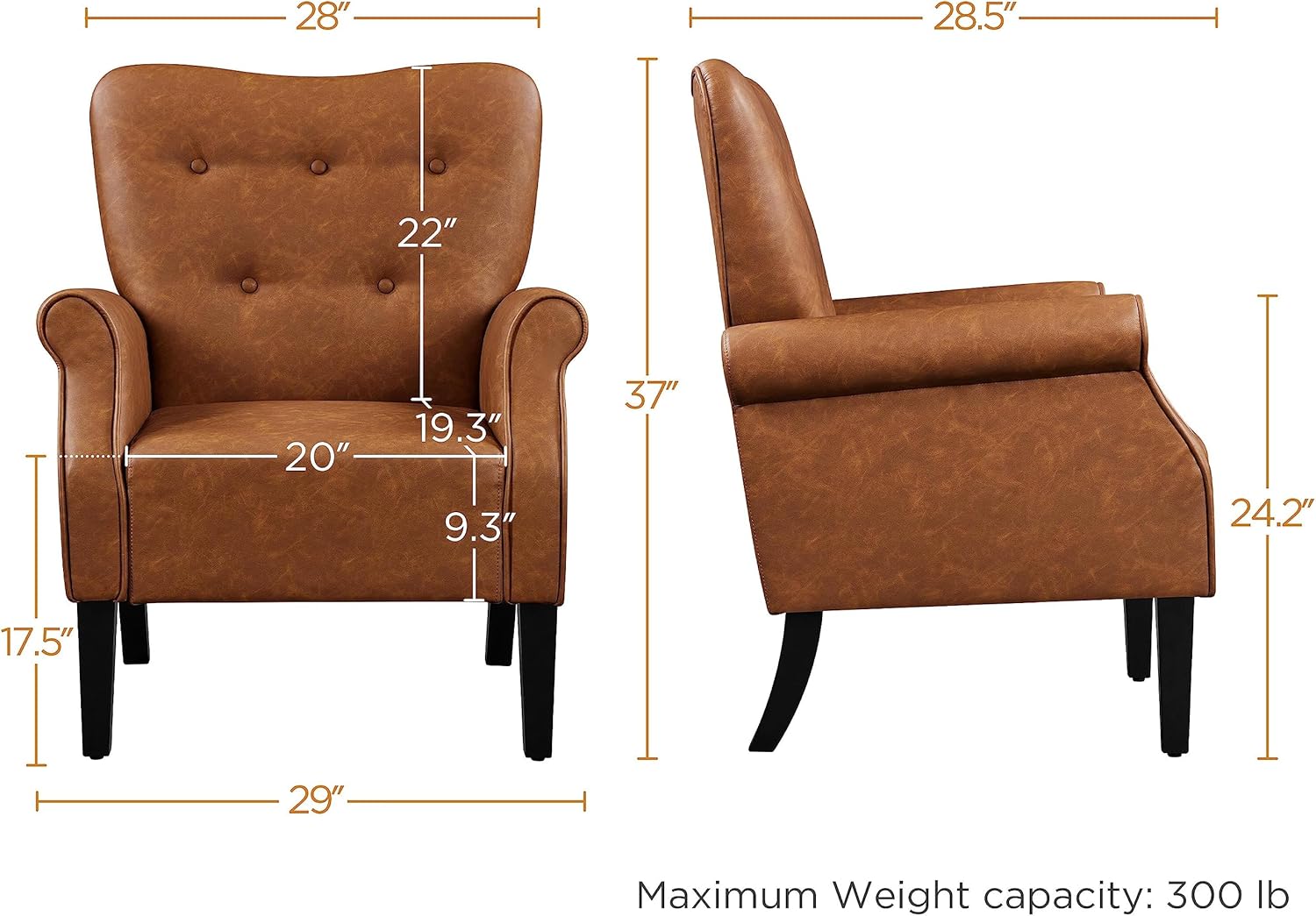 Topeakmart Fabric Accent Chair, Modern PU Leather Armchair with Wooden Legs, High Back and Comfortable Cushioned Seat for Living Room Bedroom Retro Brown 2 Piece