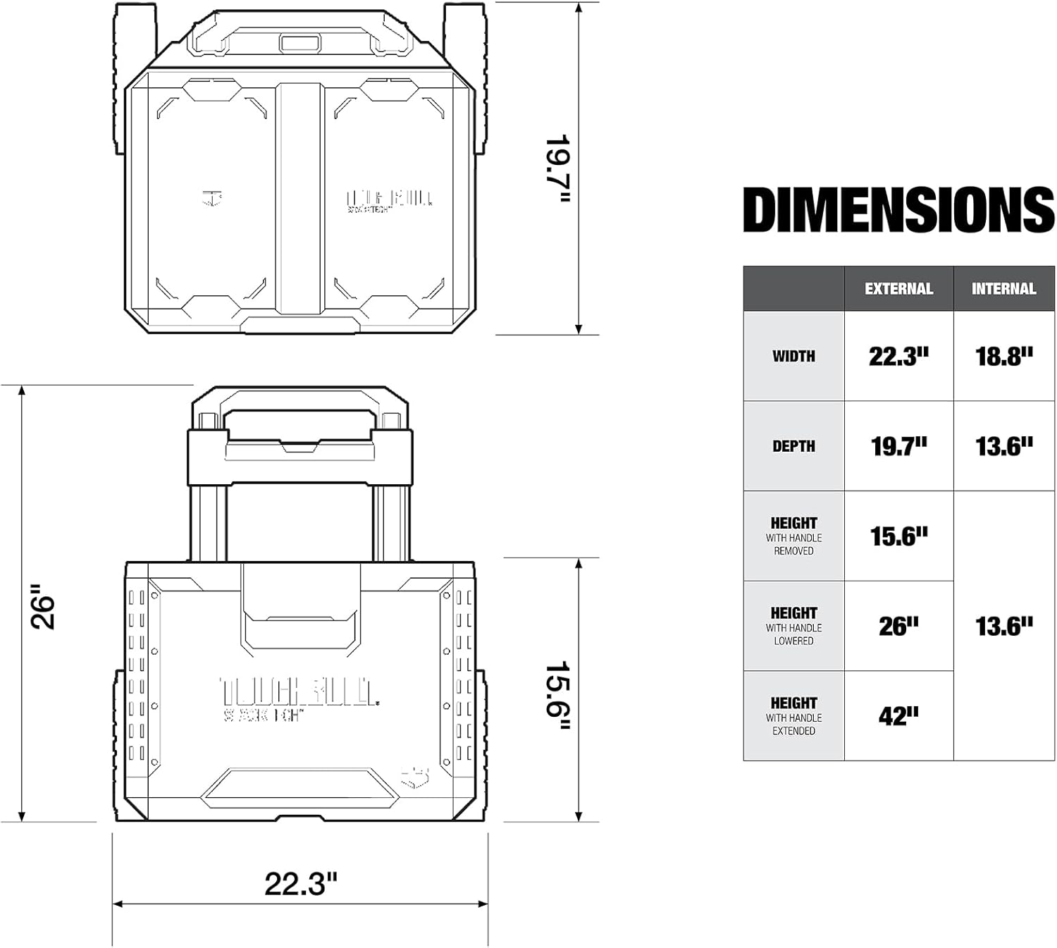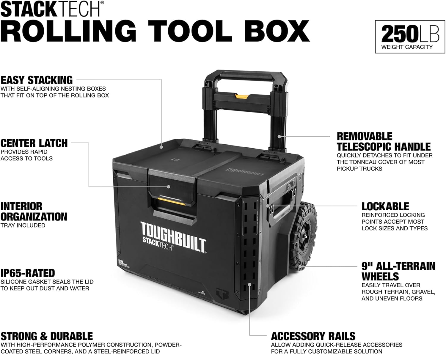ToughBuilt StackTech Rolling Tool Box, Heavy-Duty Portable Tools Organizer, 250 lb Capacity - Stackable and Waterproof Toolbox Storage System with Lockable Lid and 9-Inch All-Terrain Wheels