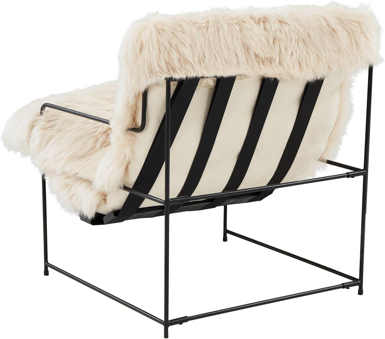 Cozy up with the Kimi Natural Genuine Sheepskin Chair! This transitional statement piece will blend with any aesthetic and add warmth to any space with its humanely sourced sheepskin and modern iron frame.