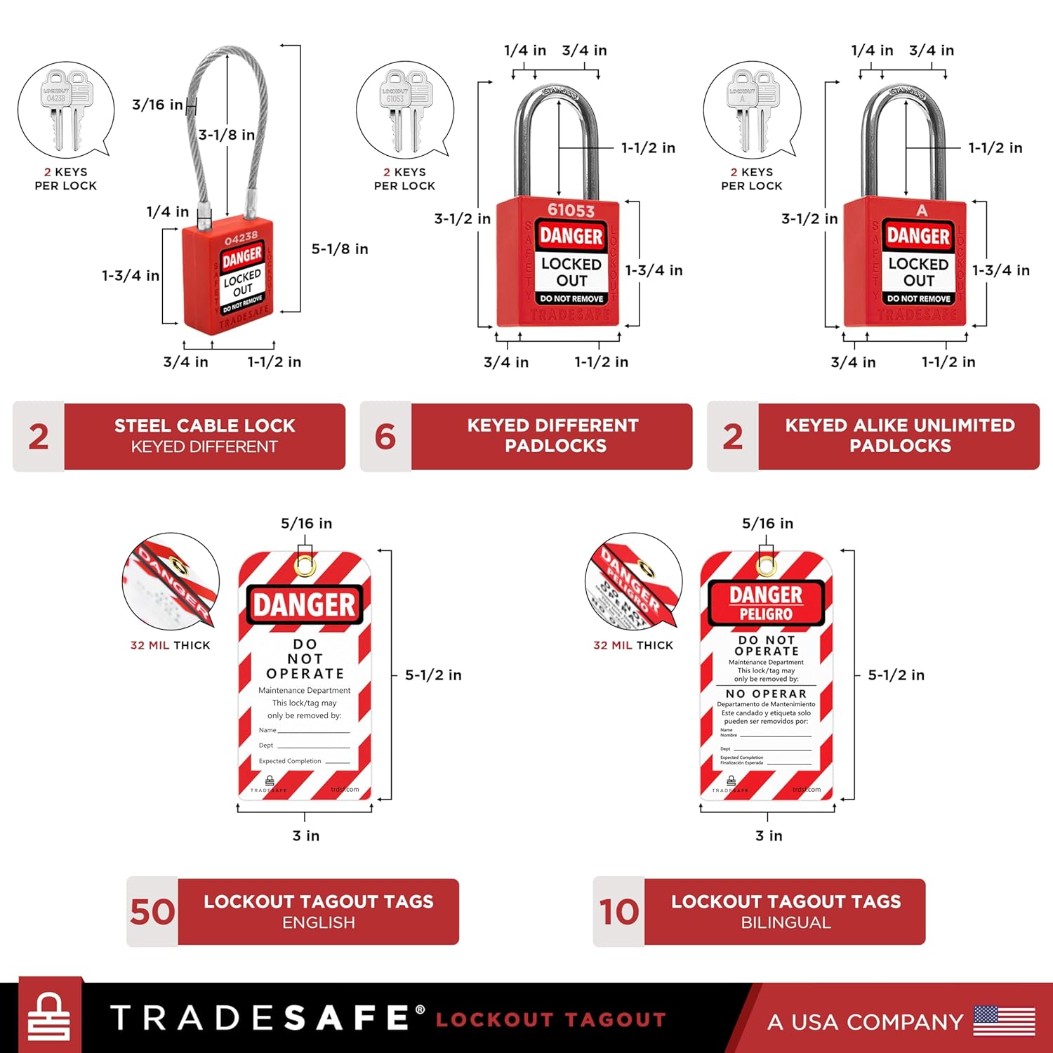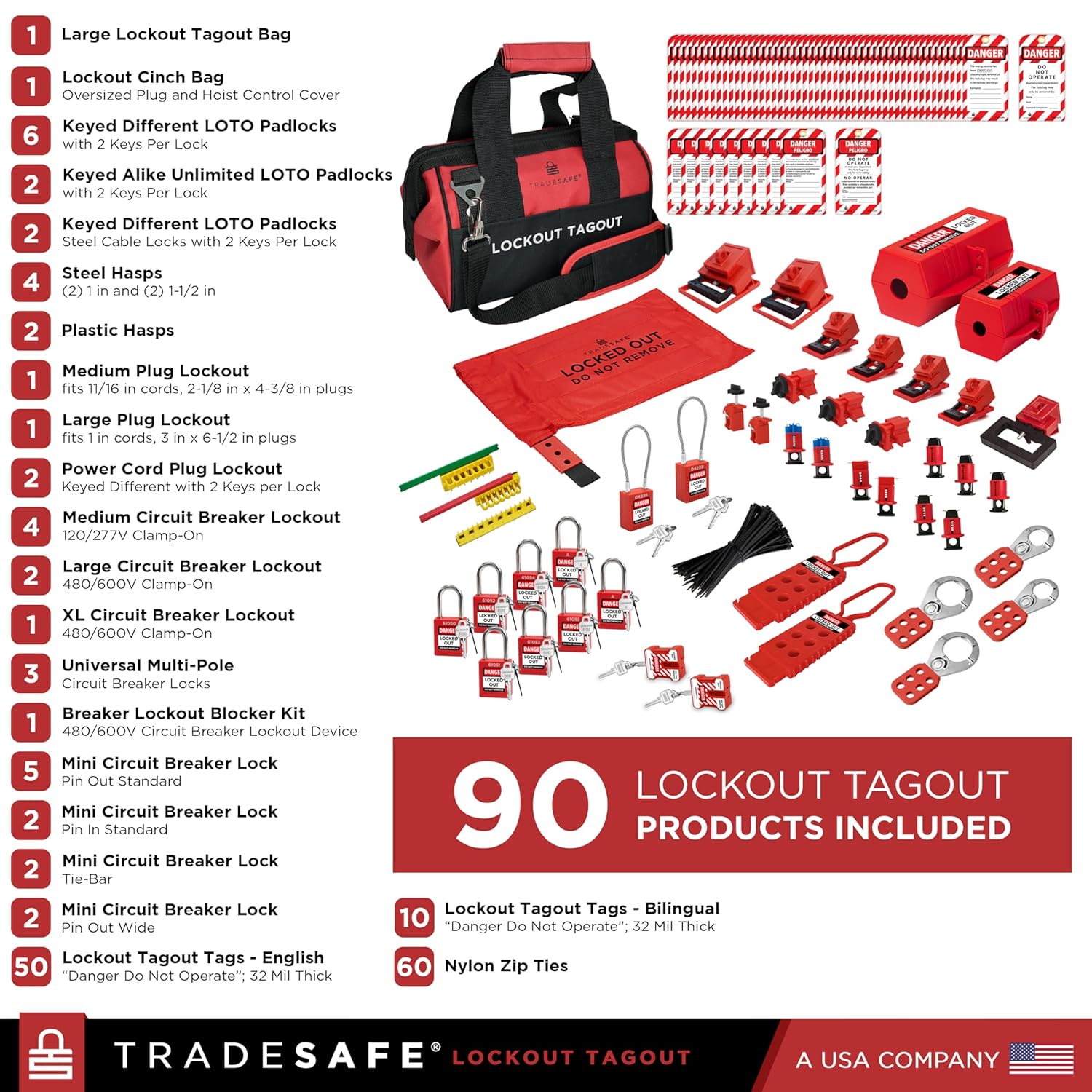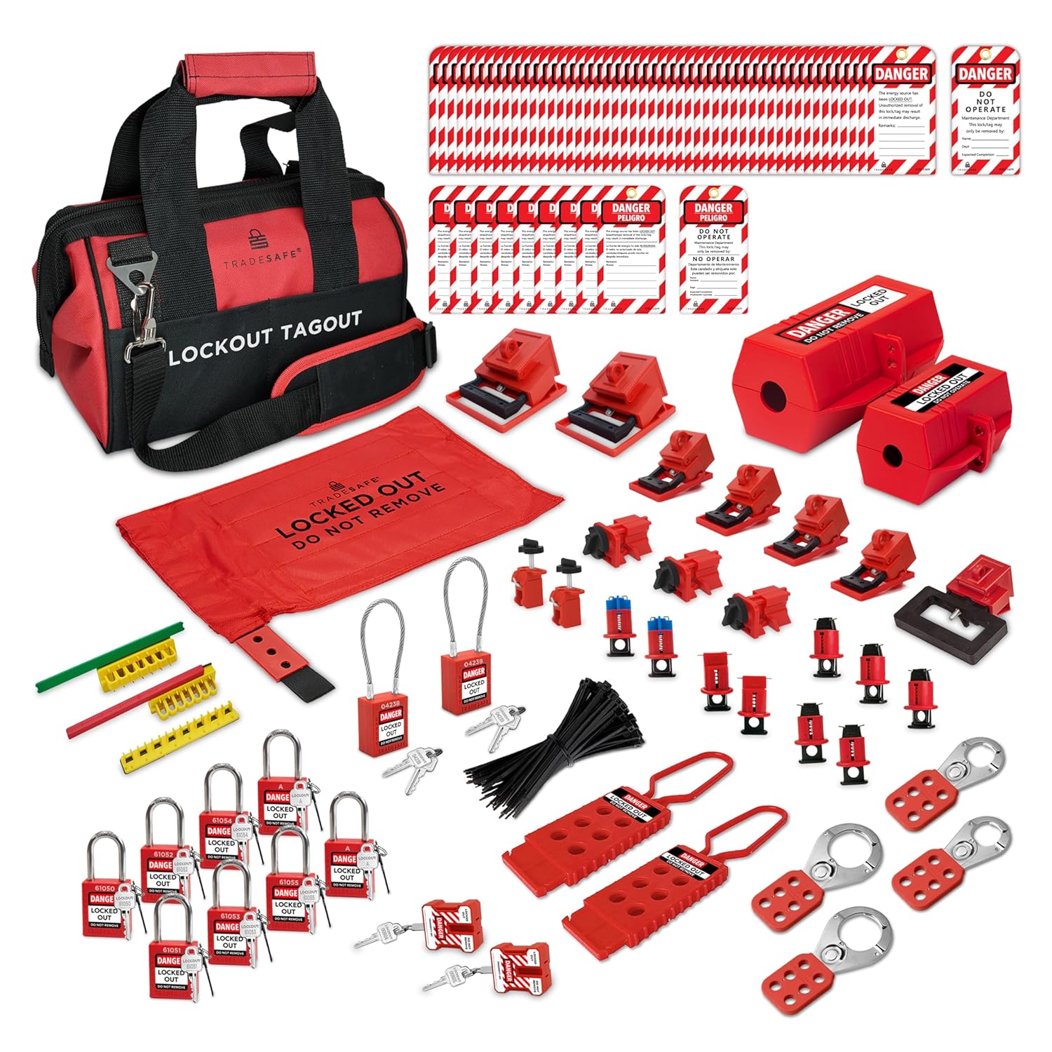 TRADESAFE Lockout Tagout Kit - 90 Loto Devices, Cable Lock, Loto Locks, Breaker Lockout Devices, Lock Out Tags, Plug Lock, Hasps, OSHA-Compliant Lock Out Tag Out Kits Electrical Tools