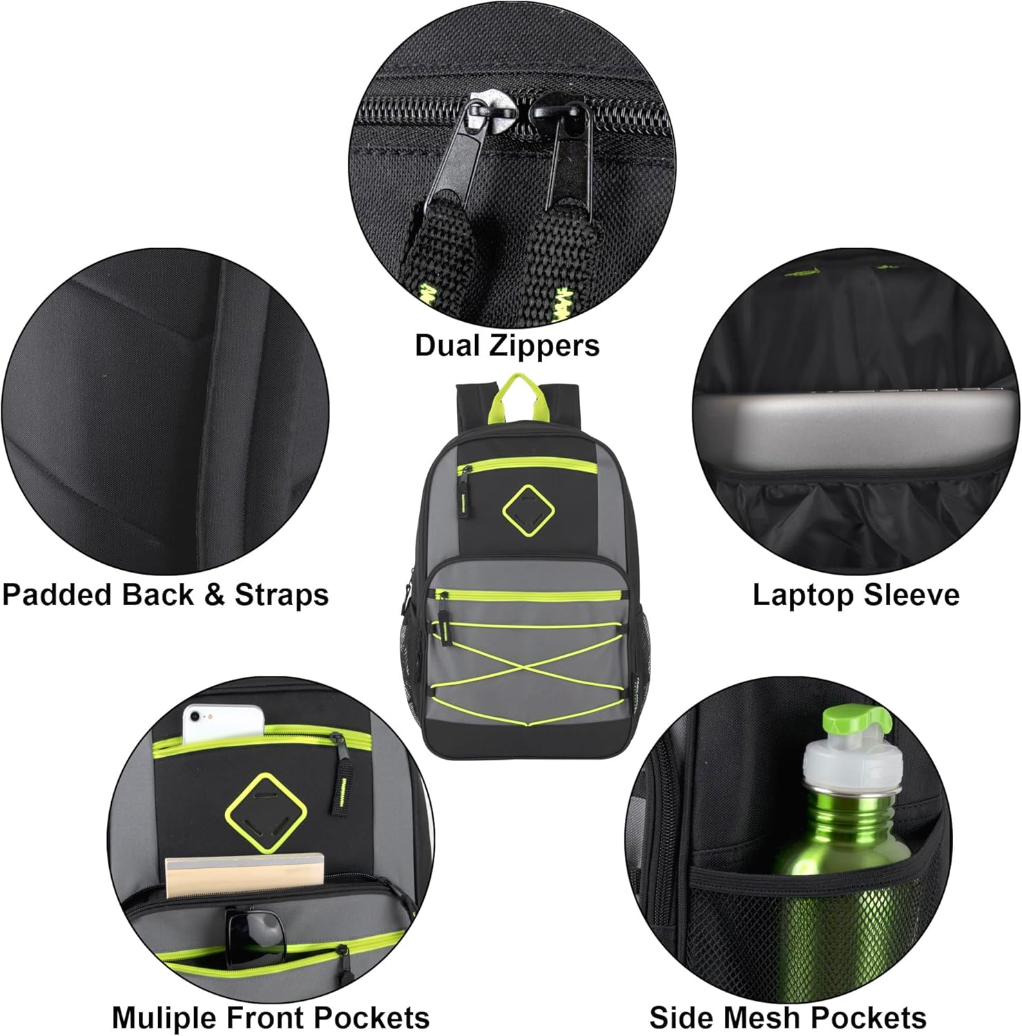 Trail maker Bulk Color Block Laptop Backpacks 24 Pack Wholesale Backpacks in Bulk for Kids Nonprofit (Male Colors Pack)