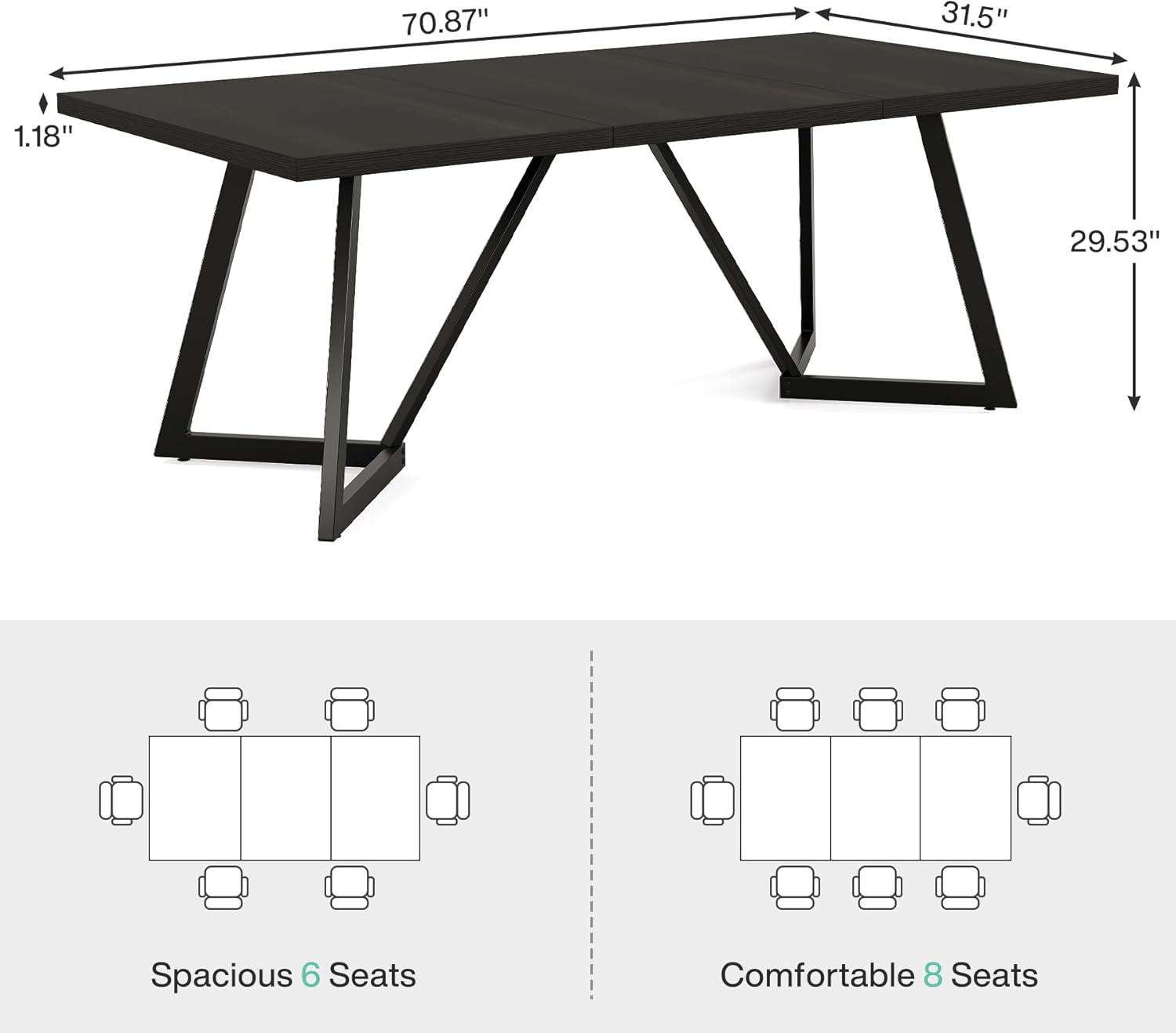 Tribesigns 70.86-Inch Large Executive Desk, Modern Computer Office Desk Workstation with Metal Frame, Rectangular Laptop Desk Study Writing Table for Home Office (Black)