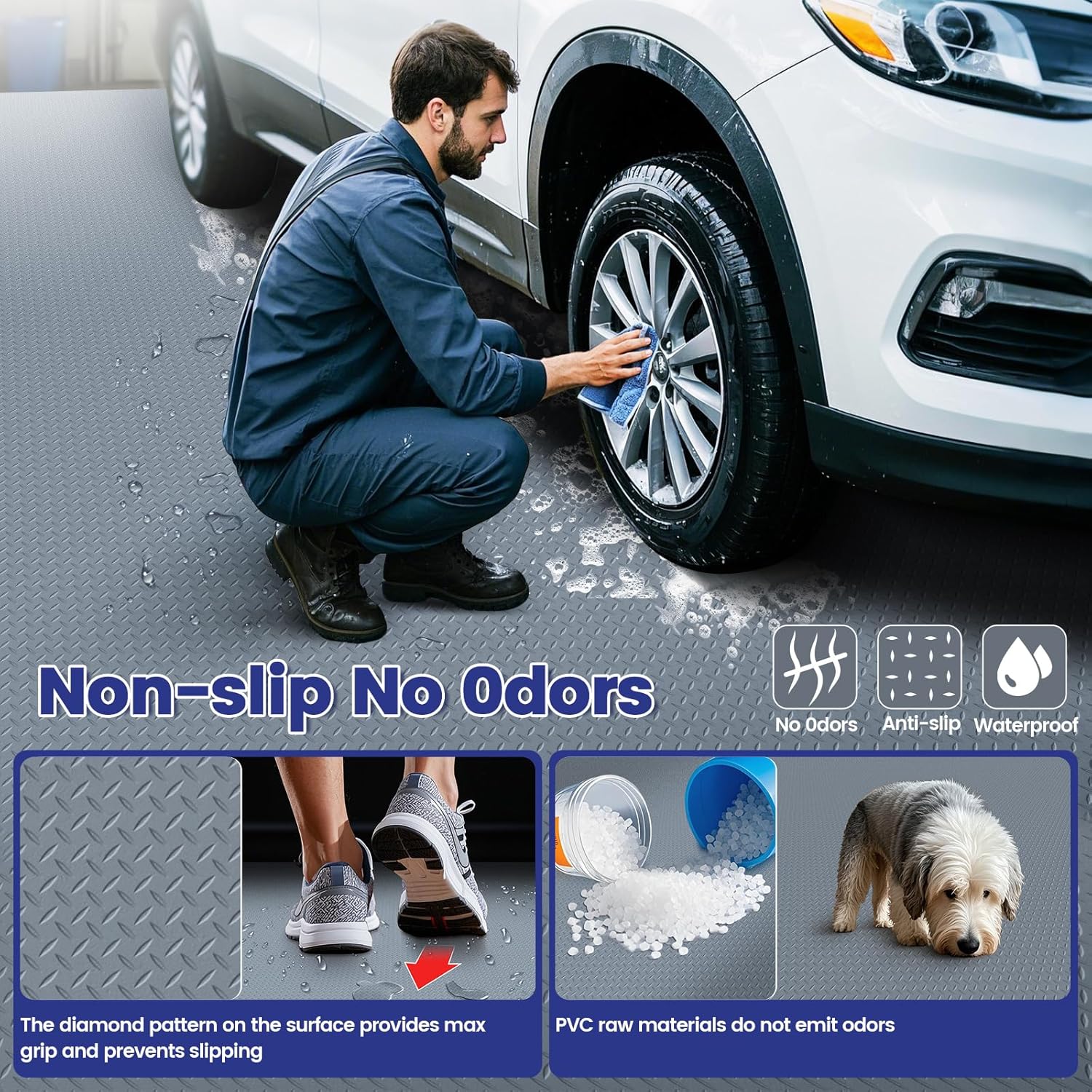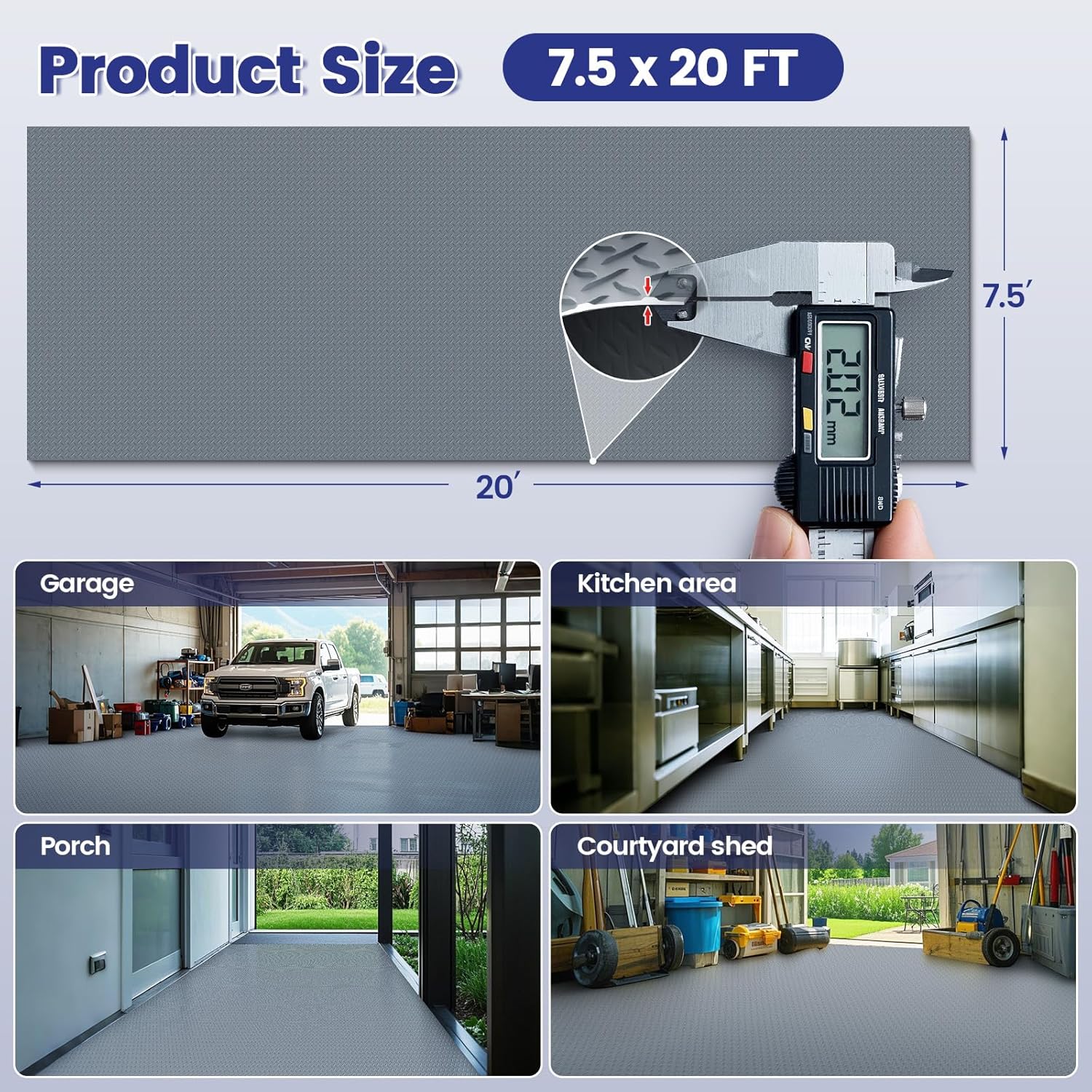 TRIPOWER Heavy Duty Garage Floor Mats - 7.5 x 20 FT, Diamond Plate, Anti-Slip and Waterproof PVC Garage Flooring Roll for Under Car, Trailer, Porch, Grey