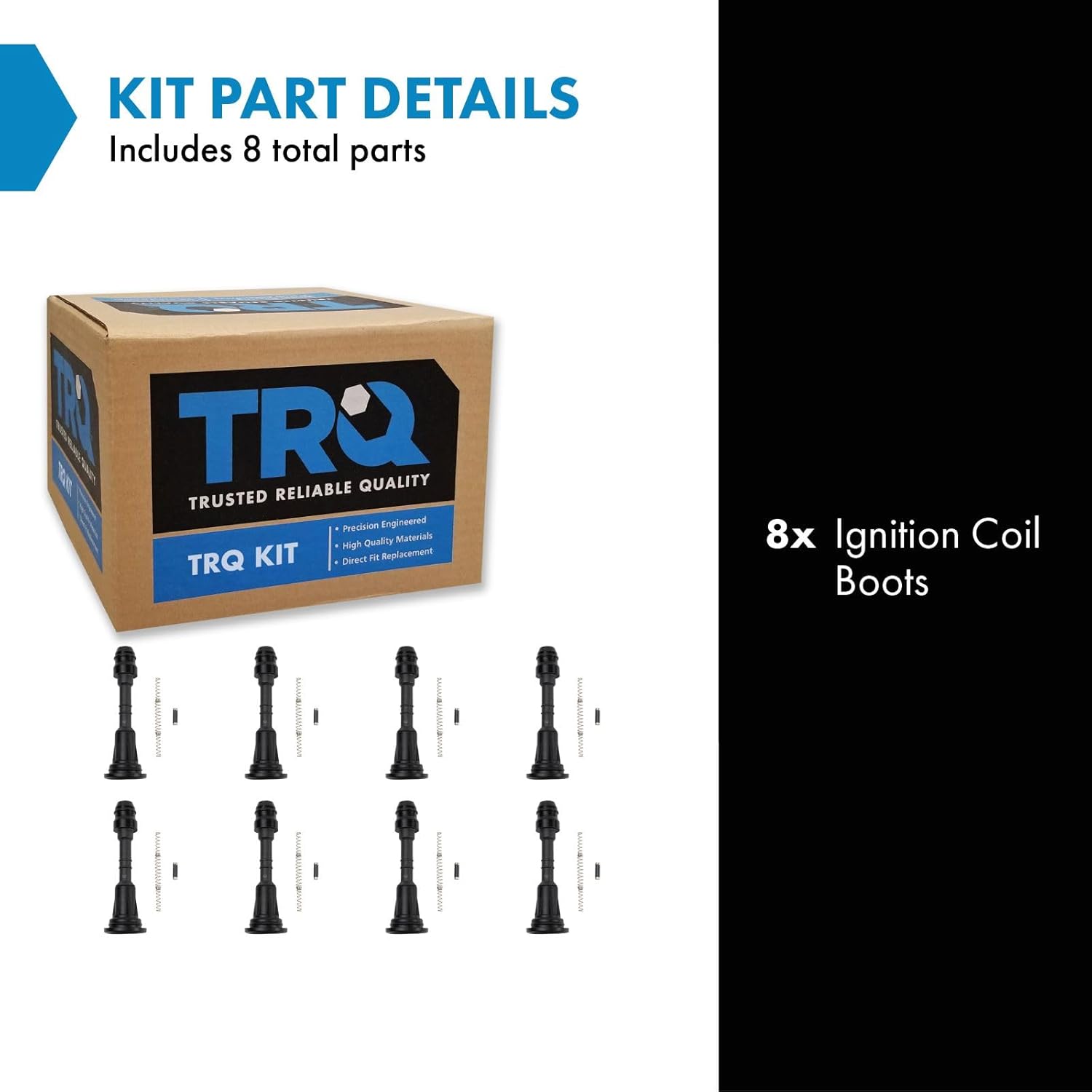 TRQ COP boots are the perfect modern-day tune-up. To ensure no costly damage to your ignition coils, ECU, or sensors TRQ recommends replacing all COP boots every 50,000 miles, or whenever the ignition coils are removed from the engine. To ensure even wear, COP boots should always be replaced in sets. All products are fit and road-tested in our Massachusetts R&D facility to ensure we deliver on our promise of Trusted Reliable Quality.