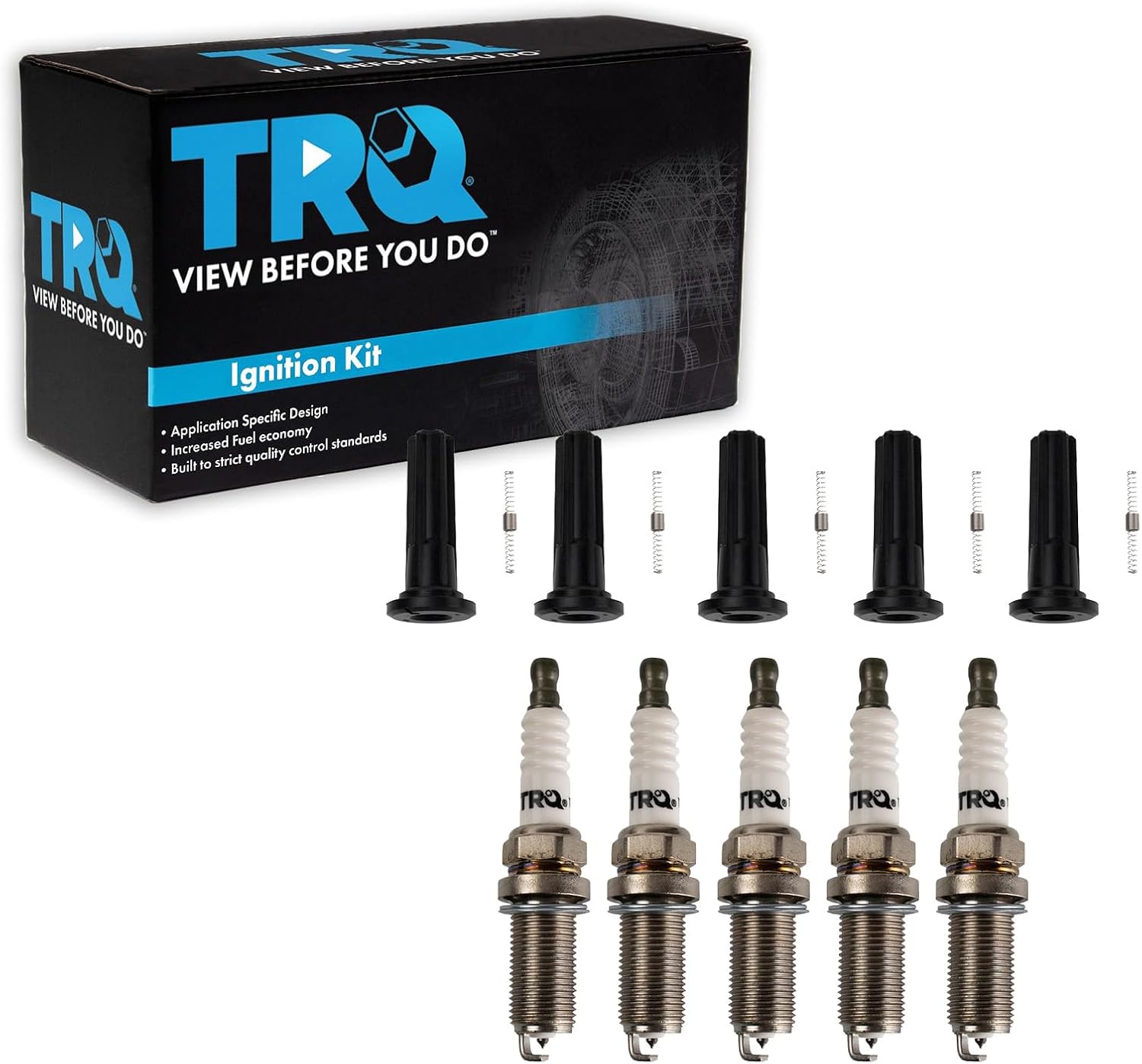 TRQ Ignition Coil Boots & Iridium Spark Plug Kit Set for Colorado Canyon H3 H3T