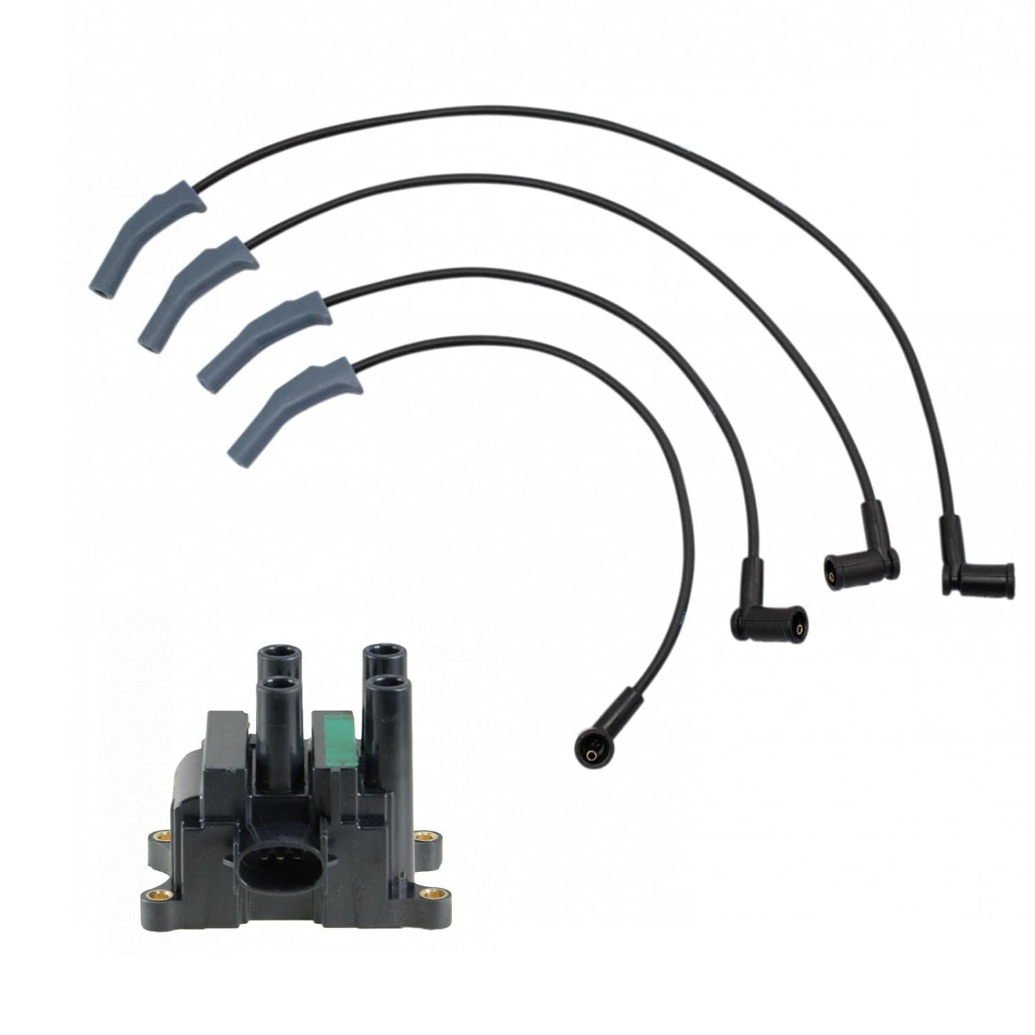 TRQ Ignition Kit Ignition Coil Spark Plugs Wire Set Compatible with 2003-2004 Ford Focus