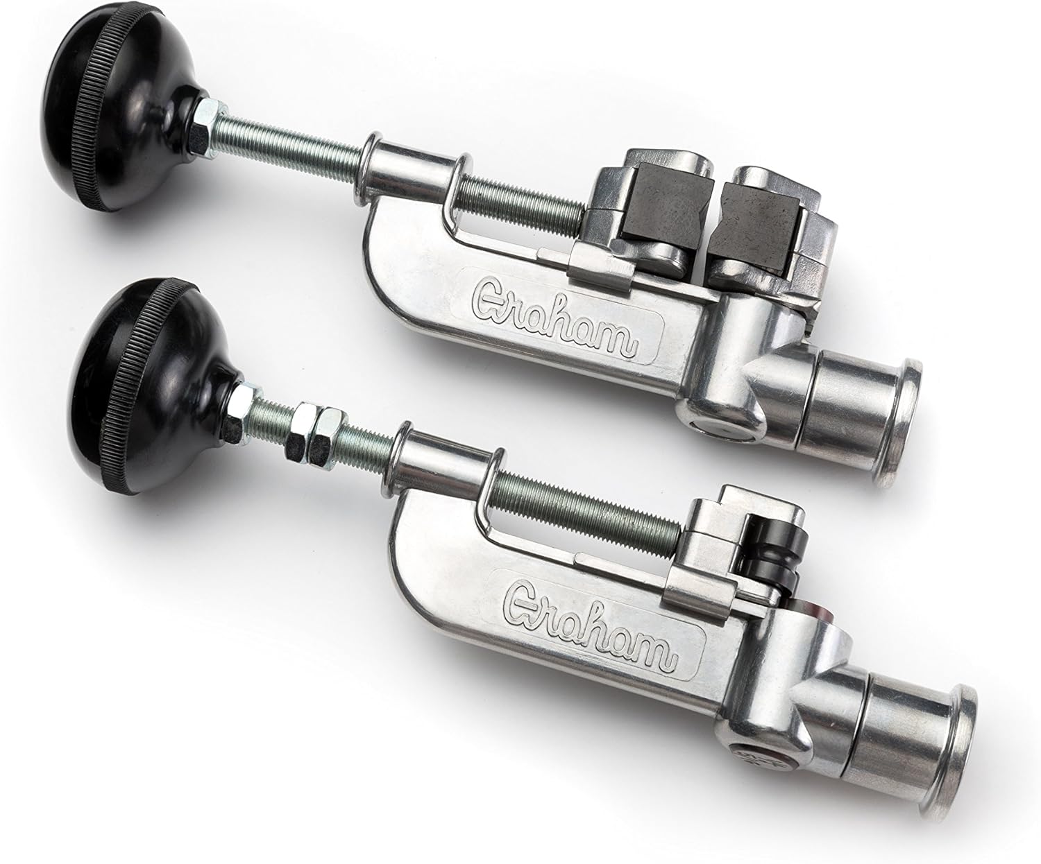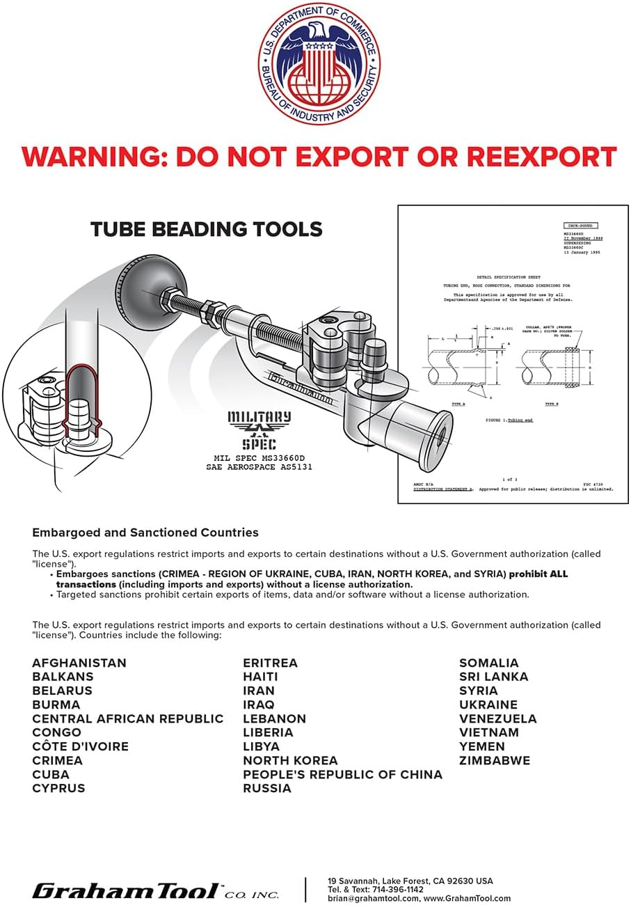 Designed in the USA during WWII for aircraft applications. This is a proven tool with a long history. Available to the public by popular demand. Manufactured in Orange, California using 100 % USA materials. Useful to form a bead on rigid tubing for hose and hose clamp applications. Works on tubing from 1/4" O.D. to 5/16" O.D. Can be used on aluminum, copper, steel, and stainless steel. The inner and outer rollers are made from heavy duty H11 tool steel for stainless steel tube applications. Our customers include Boeing, Los Alamos National Laboratory, US Marines, US Army, Sandia National Laboratories, United Launch, Spawar, and SpaceX. Creates a bead per mil-spec MS33660D (see photos) and SAE Aerospace AS5131. Simple to use. Step 1. Place tubing in field service holding tool and cut to length with a tubing cutter. Step 2. Deburr the I.D. and O.D. Step 3. Oil tube. Step 4. Install the tool, tighten the knob, and start the bead. Progressively tighten the knob with each 360 degree rotation. Field service holding tool securely holds round shapes from 1/4" to 1". Made in the USA from cast aluminum and hand-poured semi-soft polyurethane. Approximate dimensions for an individual jaw are the following: Length: 1.5", Height: 0.705".