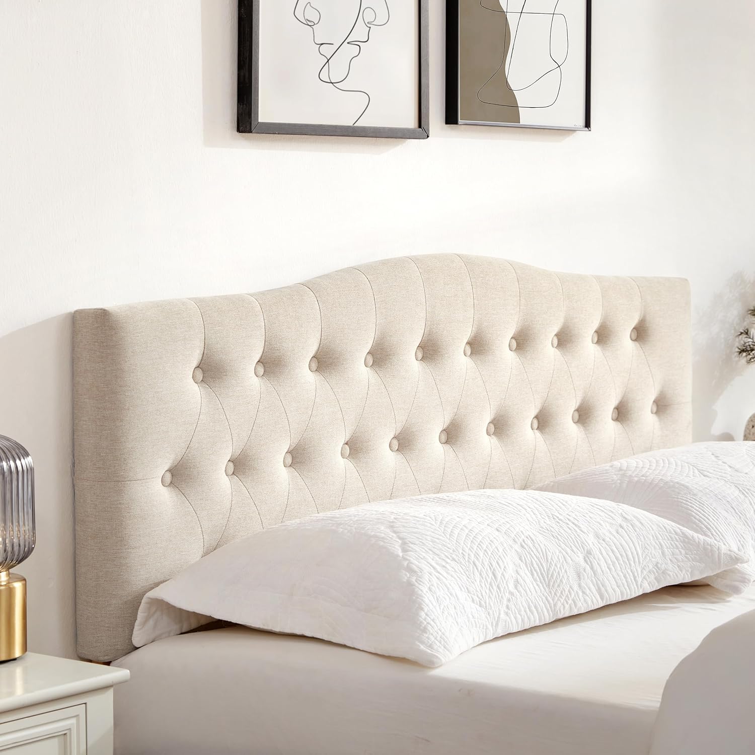 Tufted Upholstered Headboard Queen Size, Sturdy and Durable Solid Wood Bed headboard, Fabric Headboard Adjustable Height from 37” to 51”, Modern Button Diamond Design Head Board, Beige