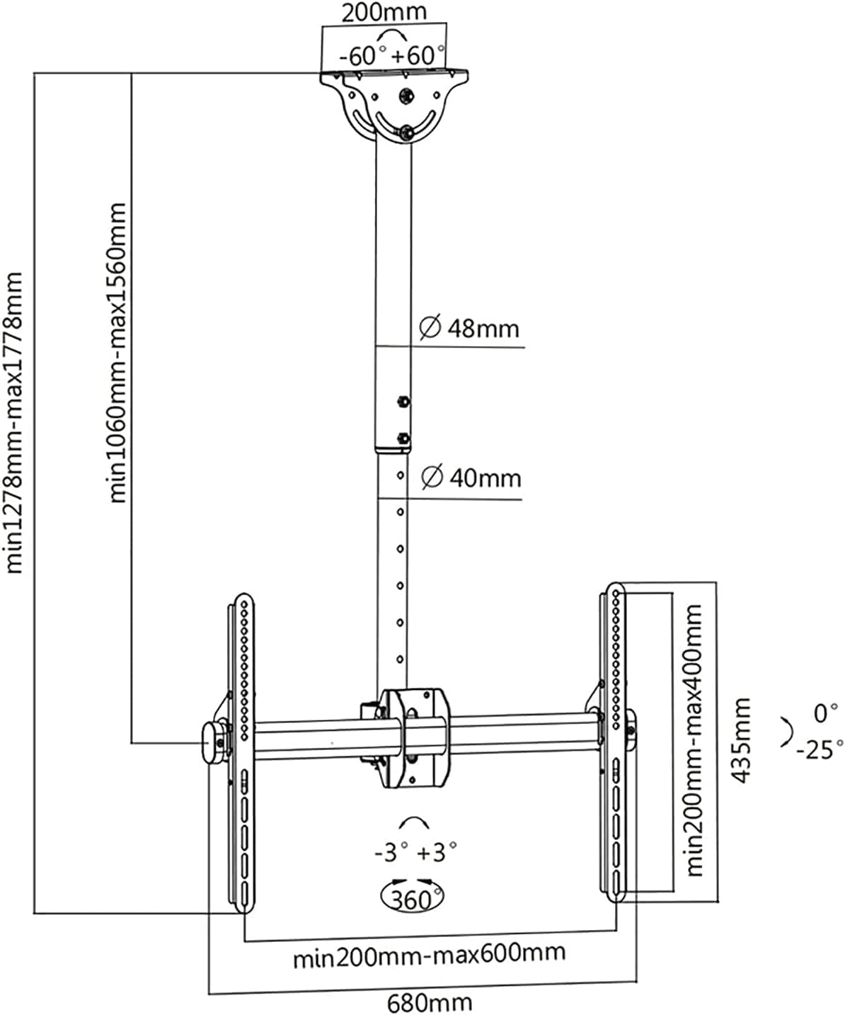 lack wall spaceNeed to install your TV to the ceilingHeight-Adjustable hanging ceiling TV mount is the solution to your limited wall space. Perfect for bars, restaurants, fitness centers, grocery stores, dental and medical offices, home installations and more!