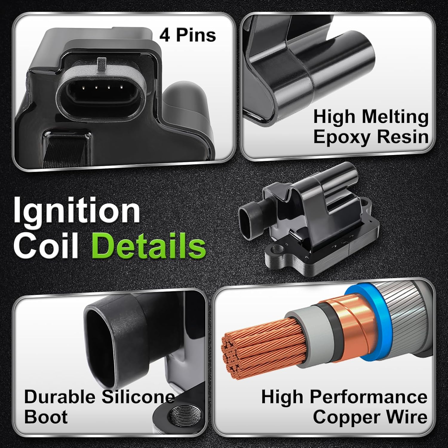UF271 Ignition Coil Square Spark Plug Wire for Chevy Silverado Avalanche 1500 Express 2500 Tahoe for Cadillac Escalade for GMC Sierra for Buick Rainier for Hummer H2 4.8L 5.3L 6.0L 8 Pack