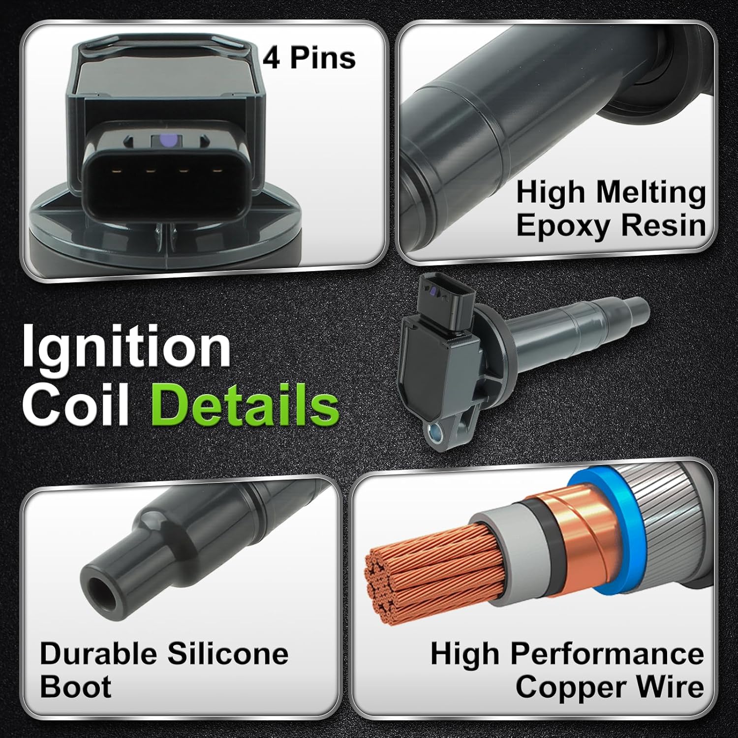 UF316 Ignition Coil Spark Plug Wire Set for Scion XA XB for Toyota Echo Prius Yaris 1.5L 2001-2018,4 pcs