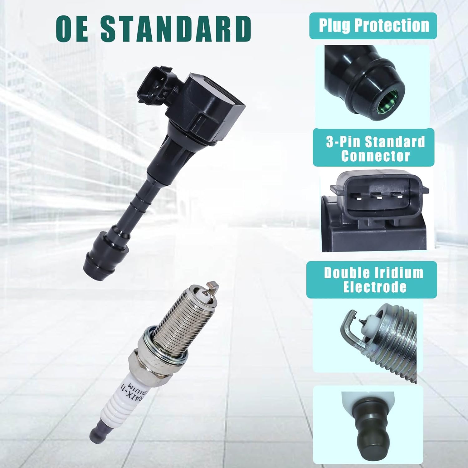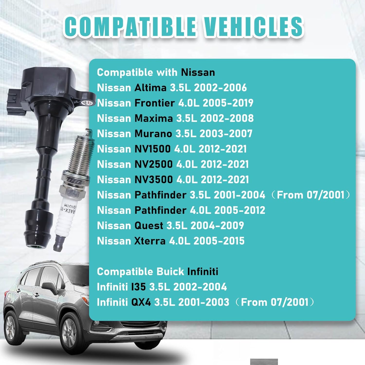 UF349 Ignition Coil Pack with Double Iridium Spark Plugs Set for 3.5 4.0 V6 Nissan Altima Maxima Murano Quest Frontier NV1500 Pathfinder Xterra Infiniti I35 QX4 Suzuki Equator 2002-2021, C1406