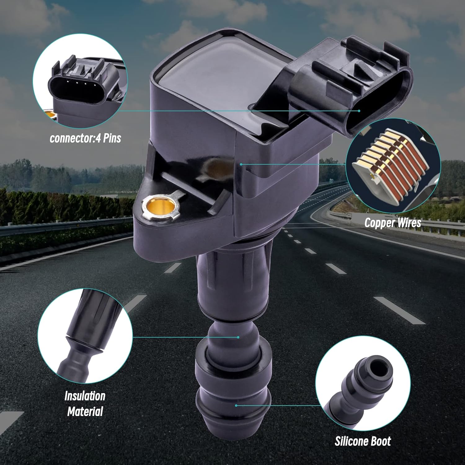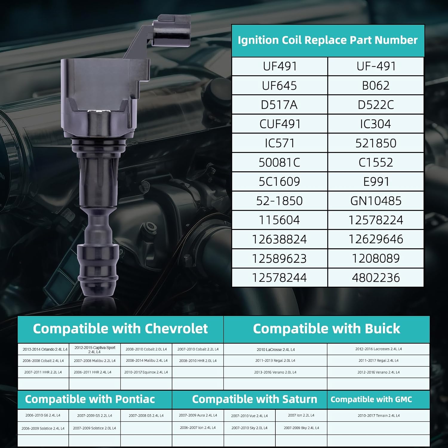 UF491 UF645 Ignition Coil For Buick Lacrosse Regal Verano,For Chevy Orlando Captiva Cobalt Equinox HHR Malibu,GMC Terrain,Pontiac G5 G6 Solstice,Saturn Aura Ion Sky Vue 2.0L 2.2L 2.4L,Set Of 4