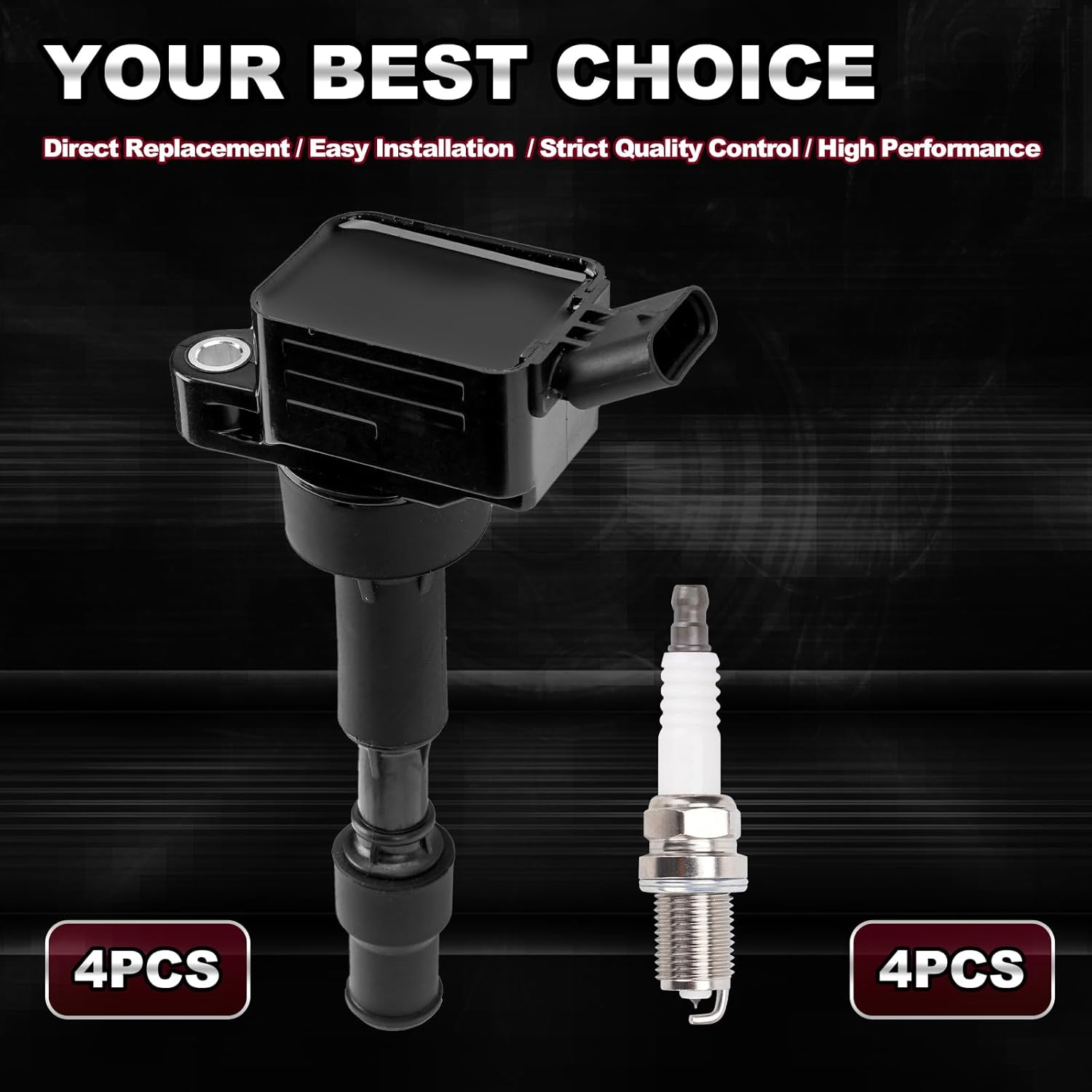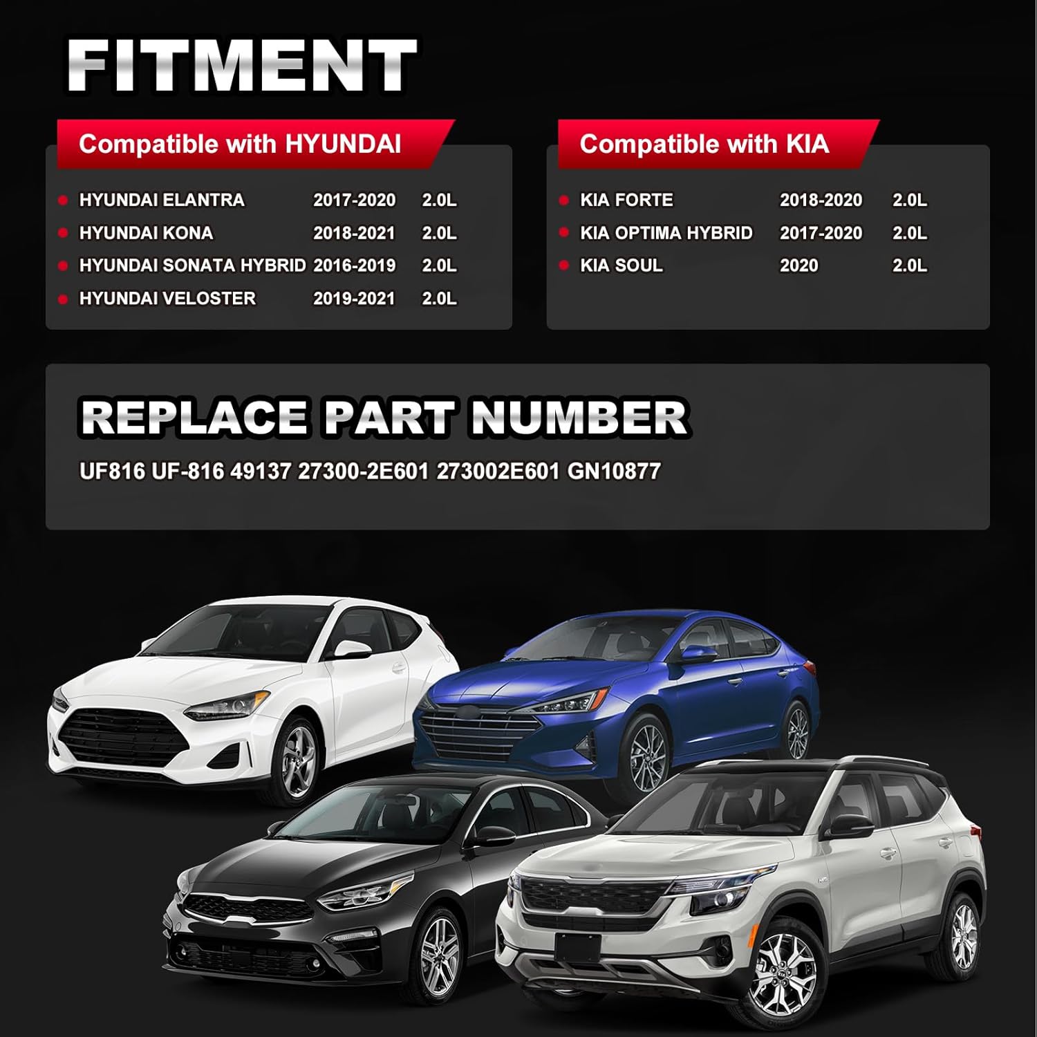 UF816 Set of 4 Ignition Coil Packs & Spark Plugs Compatible with 2016-2021 Hyundai Elantra Kona Sonata Hybrid Veloster Kia Forte Optima Hybrid Soul 2.0L Replace# 27300-2E601 49137 GN10877