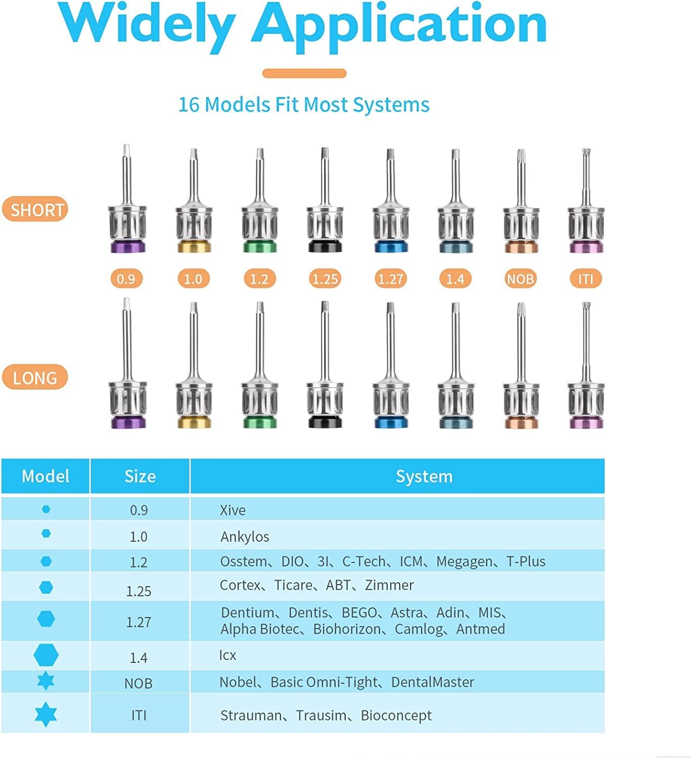 Universal 16 Pcs Universal Implant Prosthetic Kit Long and Short - Dental Implant Driver Kit with Torque Wrench Size 10-70Ncm - Dental Implant Restoration Screwdriver Kit- By PAKMED