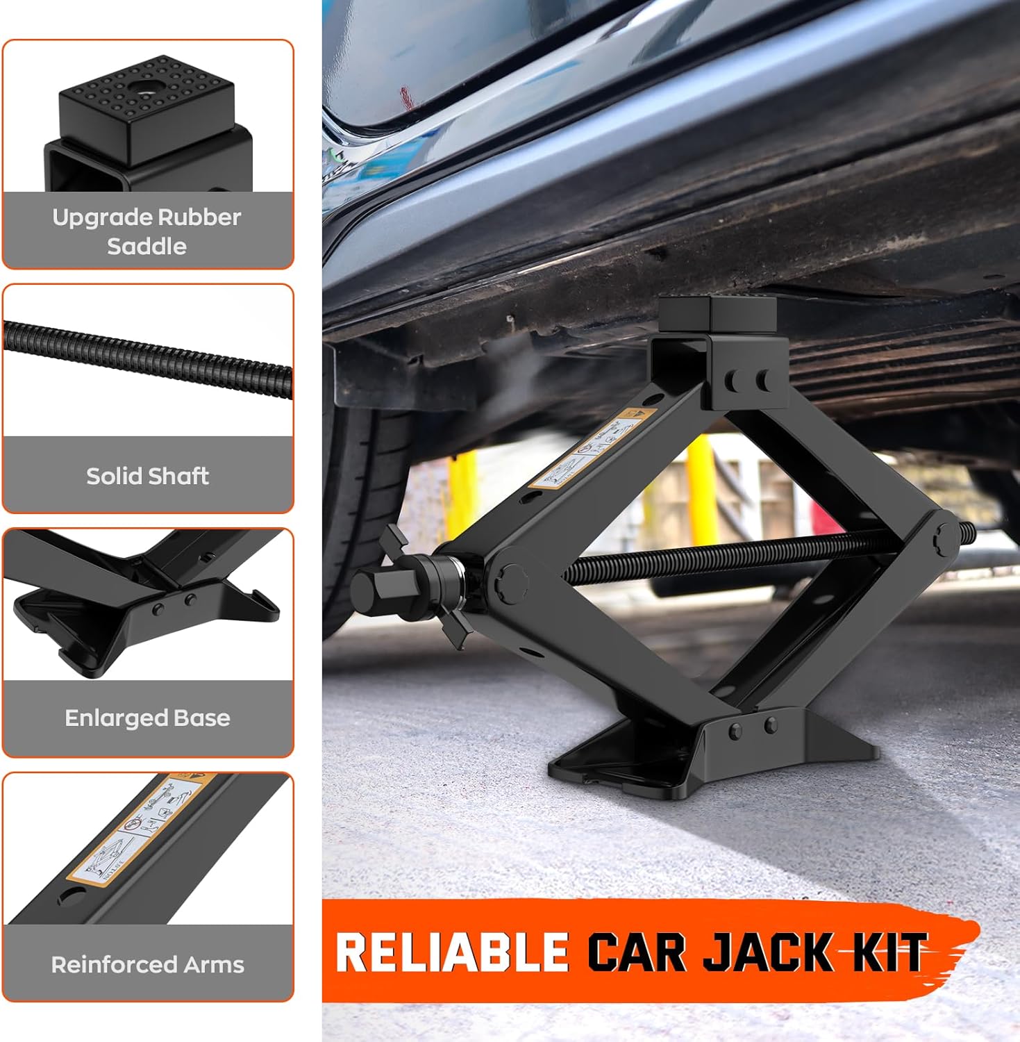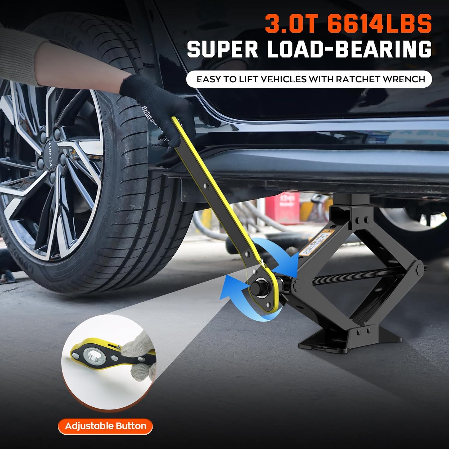 Universal Car Jack Kit Scissor Jack for Car 3 Ton 6614 LBS Spare Tire Changing Kit,Portable Tire Jack Repair Kit with Lug Wrench,Car Lifting Jack for Auto/SUV/MPV