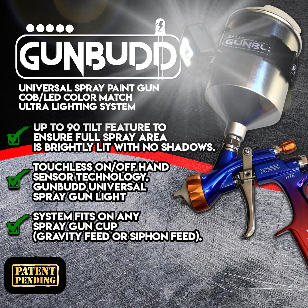 Universal Spray Gun Ultra Lighting System COB/LED (Automotive Spray Paint Gun Color-Match Light) 5-9K for Pro Finishes (USB, Adjustable Light and Hands-Free Mode). 500 Lumens.