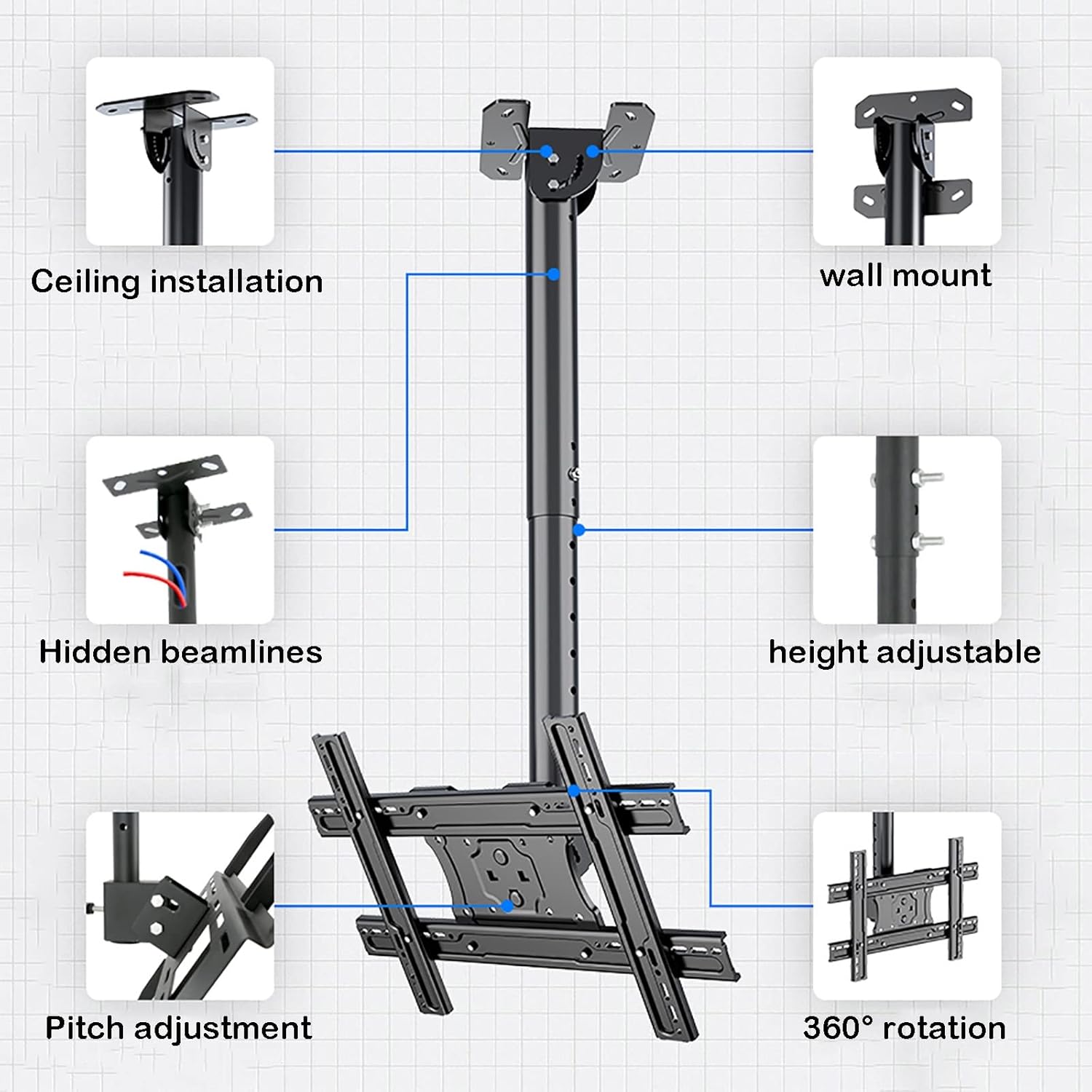 lack wall space? Need to install your TV to the ceiling? Height-Adjustable hanging ceiling TV mount is the solution to your limited wall space. Perfect for , restaurants, fitness centers, grocery stores, dental and medical offices, home installations and more!