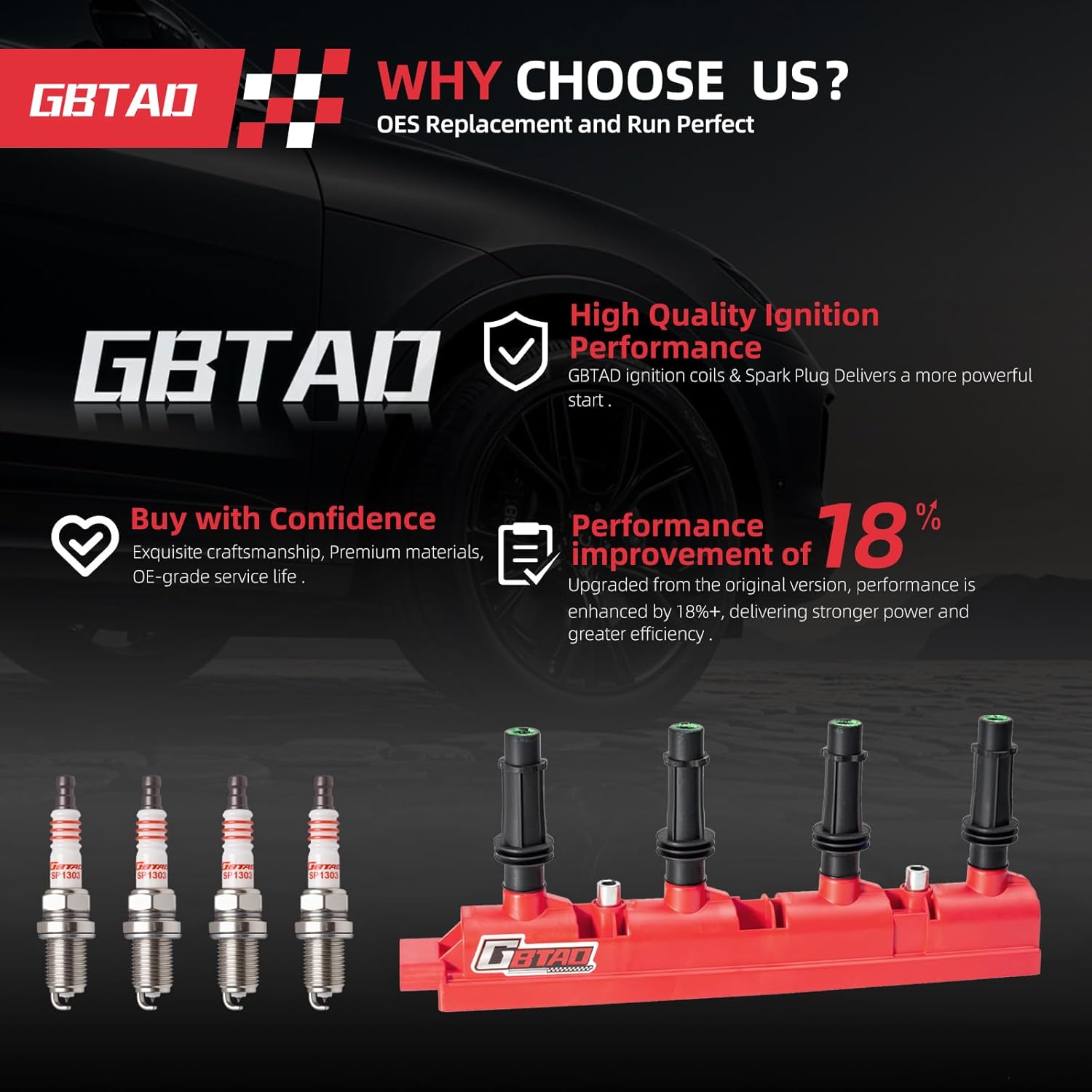 Upgraded Ignition Coil Pack and 4x Iridium Spark Plug for 1.4L 1.8L L4 2011-2021 Chevy Cruze Sonic Trax Volt Buick Encore, Fits Cadillac ELR Replaces UF669 D521C 55577898