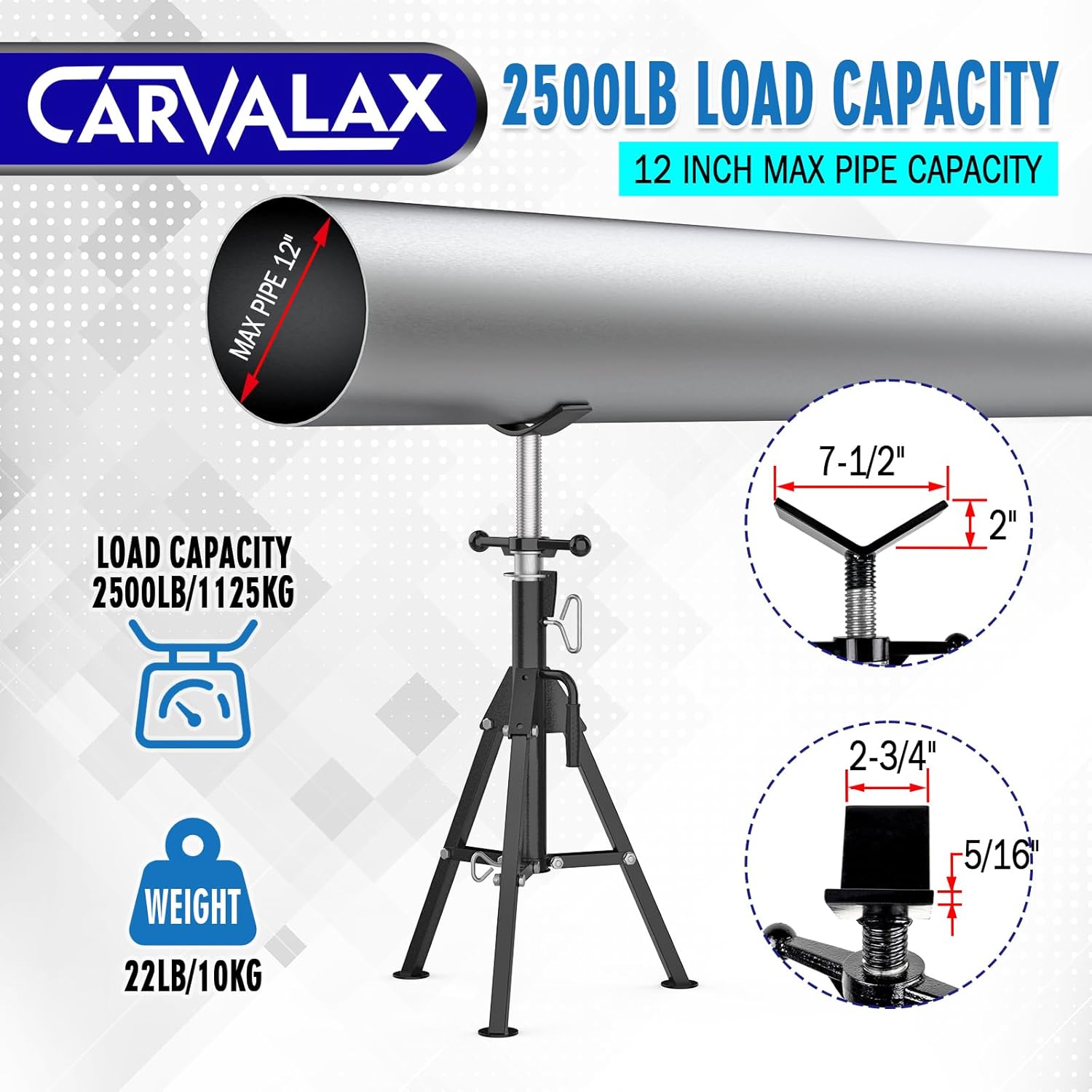 V-Head Pipe Jack Stands, 28"-52" Adjustable Pipe Stand Fits 1/2" - 12" Pipe Capacity w/ 2500LB Load Capacity, Steel Pipe Stand for Welding w/Portable Folding Legs