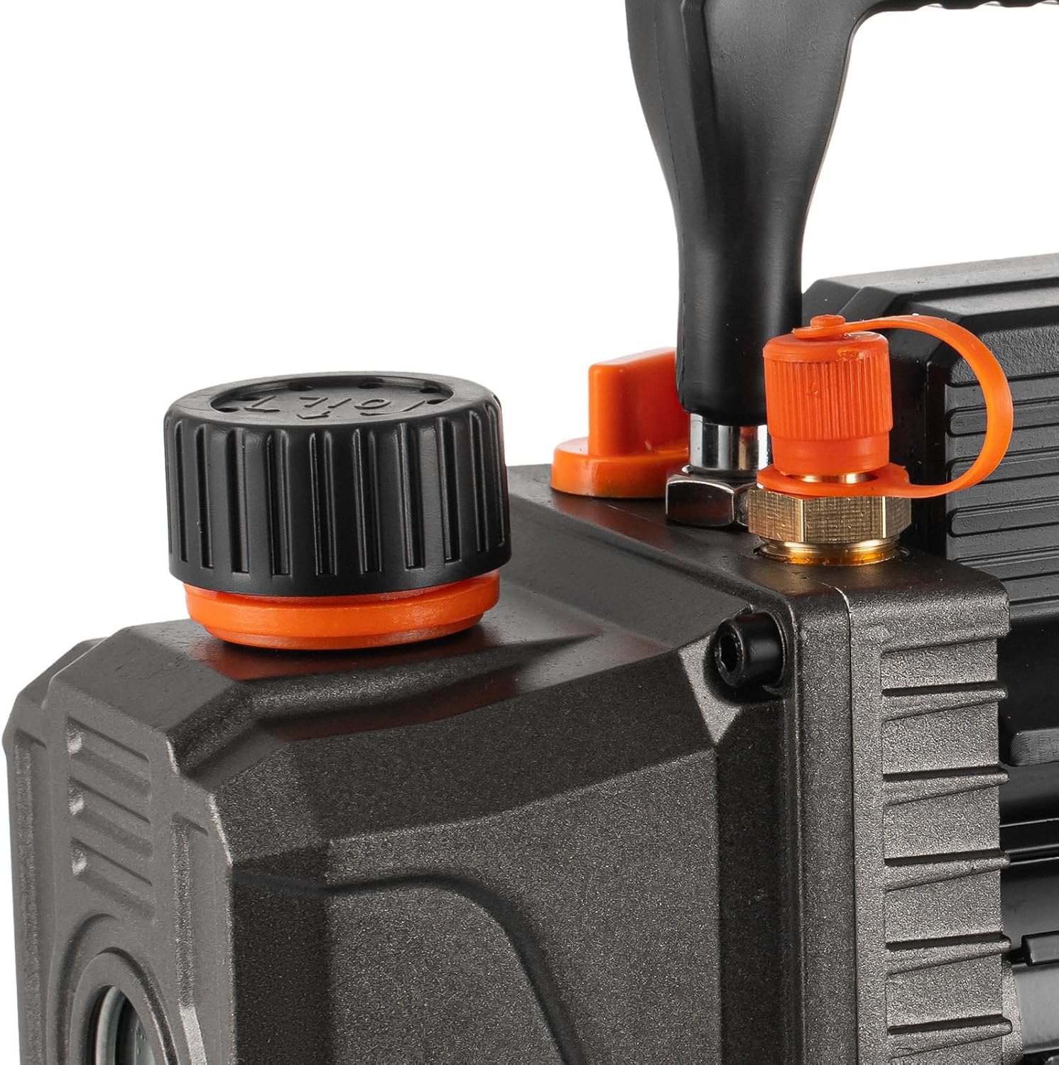 Enhance your HVAC system maintenance with our cutting-edge Vacuum Pump 3.5CFM 1/4HP Single Stage Air Vacuum Pump HVAC, complete with an R134A Kit and AC A/C Manifold Gauge Set. This high-performance single-stage refrigeration vacuum pump efficiently eliminates contaminants like moisture and air from air conditioning and refrigeration systems. Its applications span diverse industries, including vacuum forming, scientific research, printing, and fiberglass infusion, catering to scenarios demanding profound vacuum capabilities.