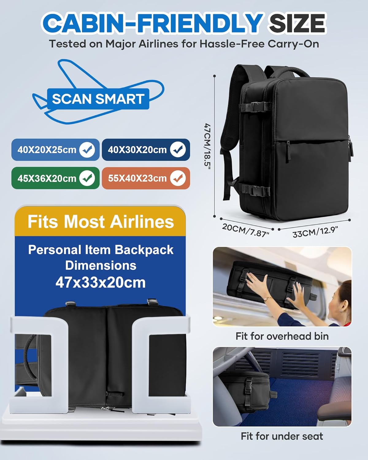 Vacuum Seal Travel Backpack with Air Pump Compression Vacpack Waterproof Carry On Backpack for Travel Women men with Vacuum System Laptop Airlines Approved Daypack Space Saver Bags Black