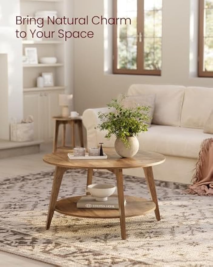 VASAGLE Round Coffee Table, 2 Tier Coffee Table with Storage, for Living Room, 31.5 x 17.7 Inches, Easy to Assemble, Honey Brown ULCT243K41