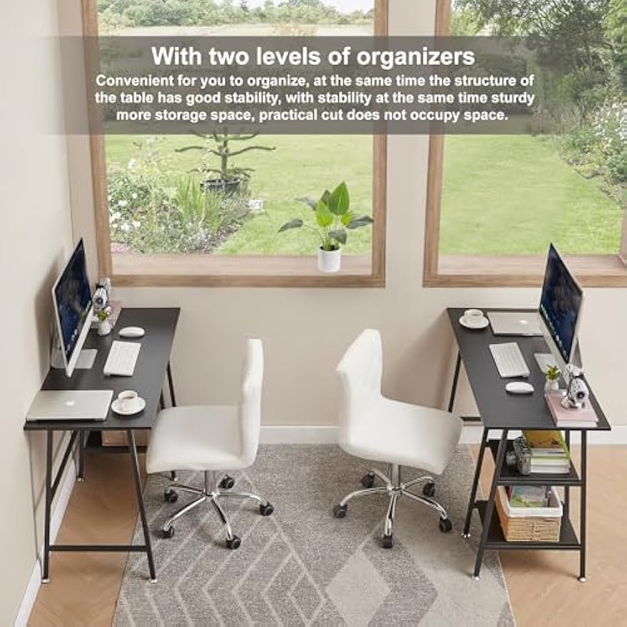 VECELO 43 Inch Computer Home Office Desk Modern Simple Writing Desk with Storage for Bedroom Simple Table Modern Student Study Desk,Water Proof, Black+Black Leg