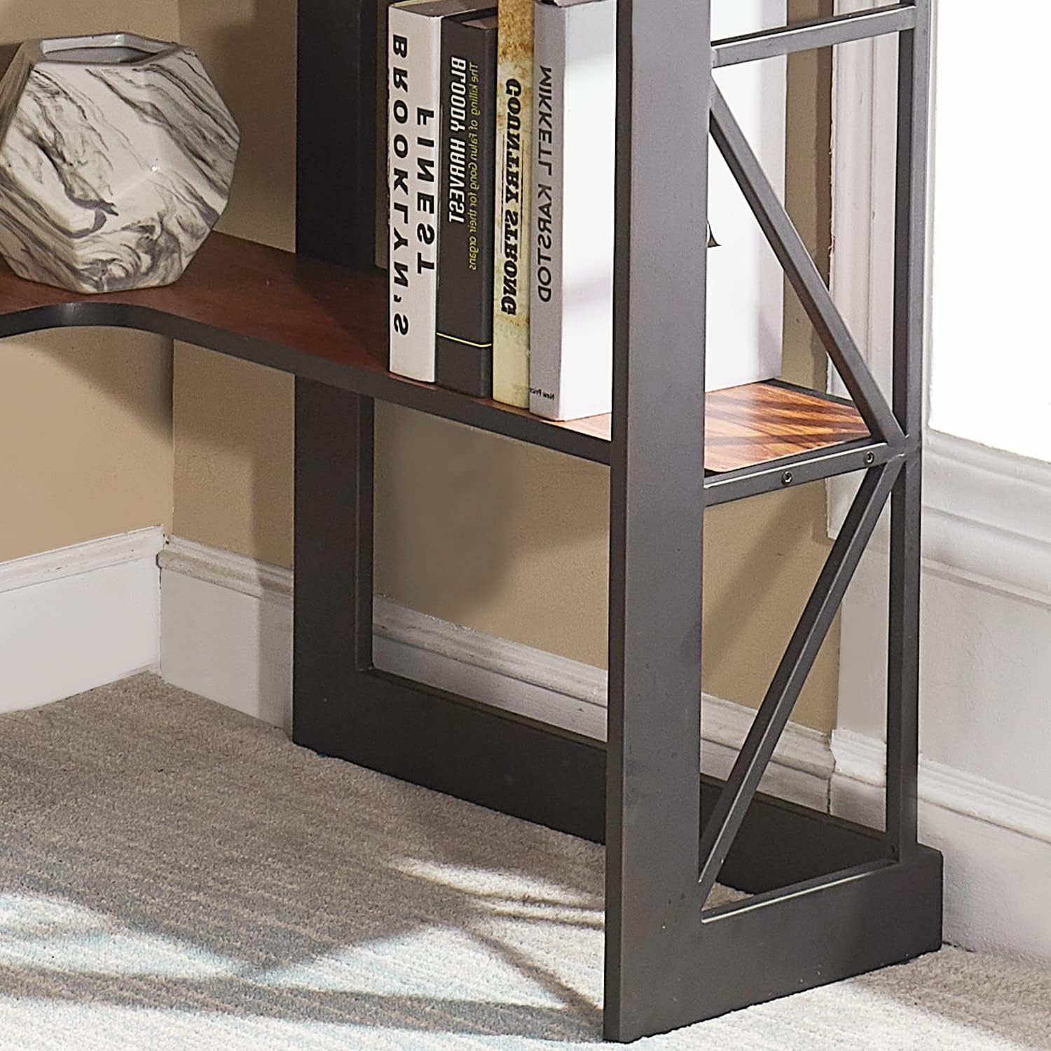 VECELO Corner Desk Computer Desk Writing Table with Smooth Keyboard Tray & Storage Shelves,Compact Home Office Triangle Table,Teak